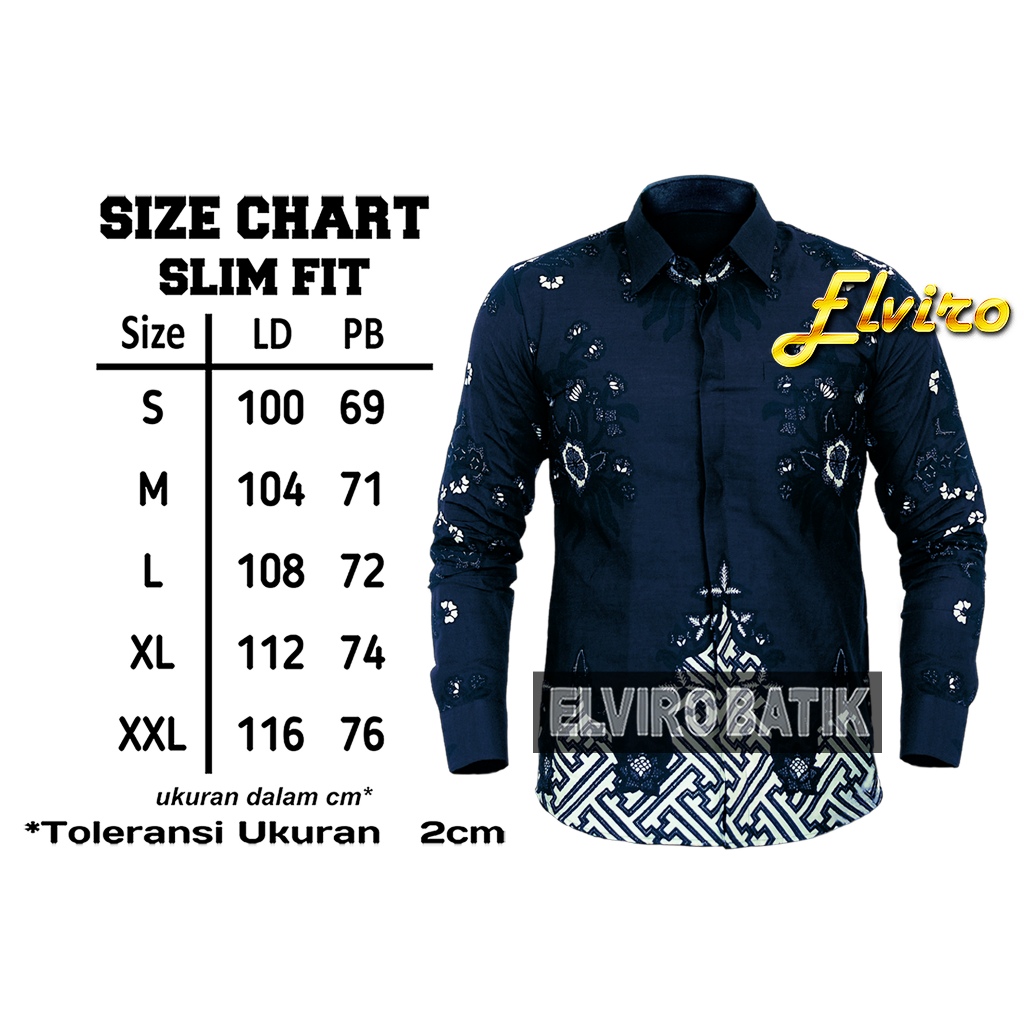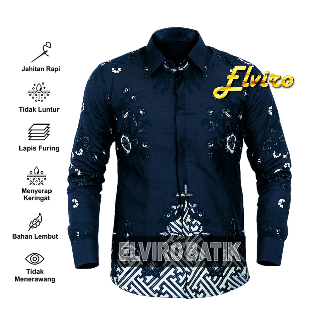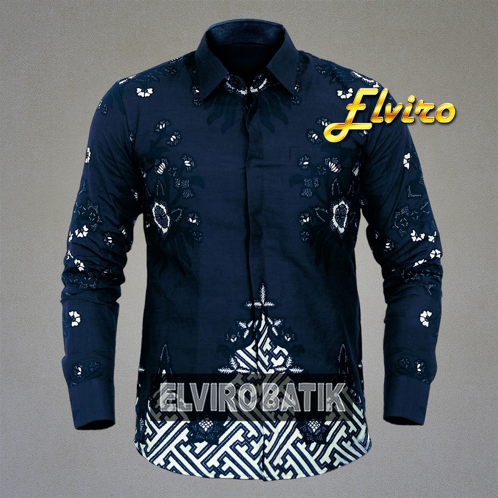 Radhika Navy Baju Batik Pria Dewasa Lengan Panjang Slimfit Premium Modern Terbaru Elviro Store Solo