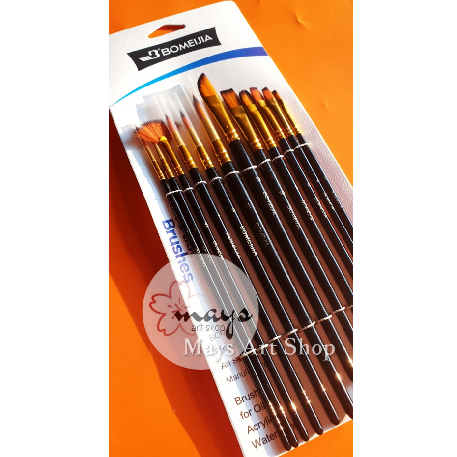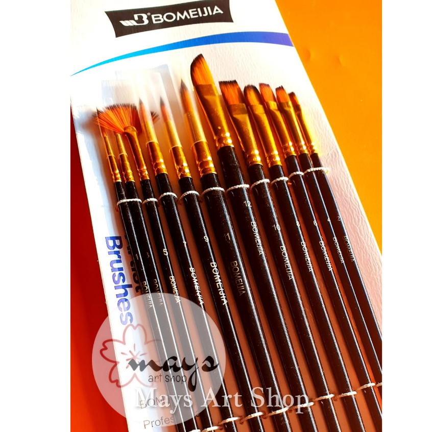 [12 Pcs] Kuas Lukis Set Isi 12 Pcs - Premium Quality Artist Paint Brush - Kipas Fan Flat Round Angular Lancip rylic Oil