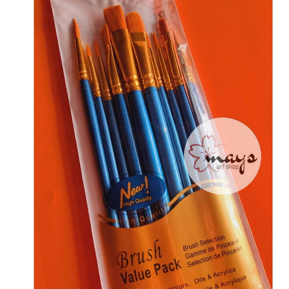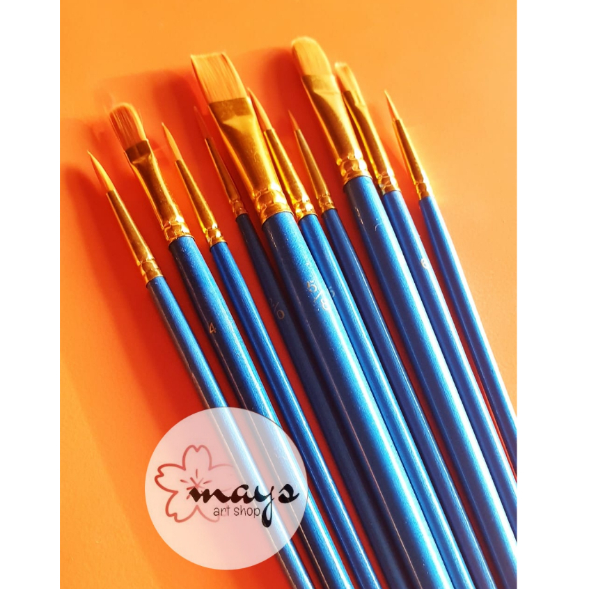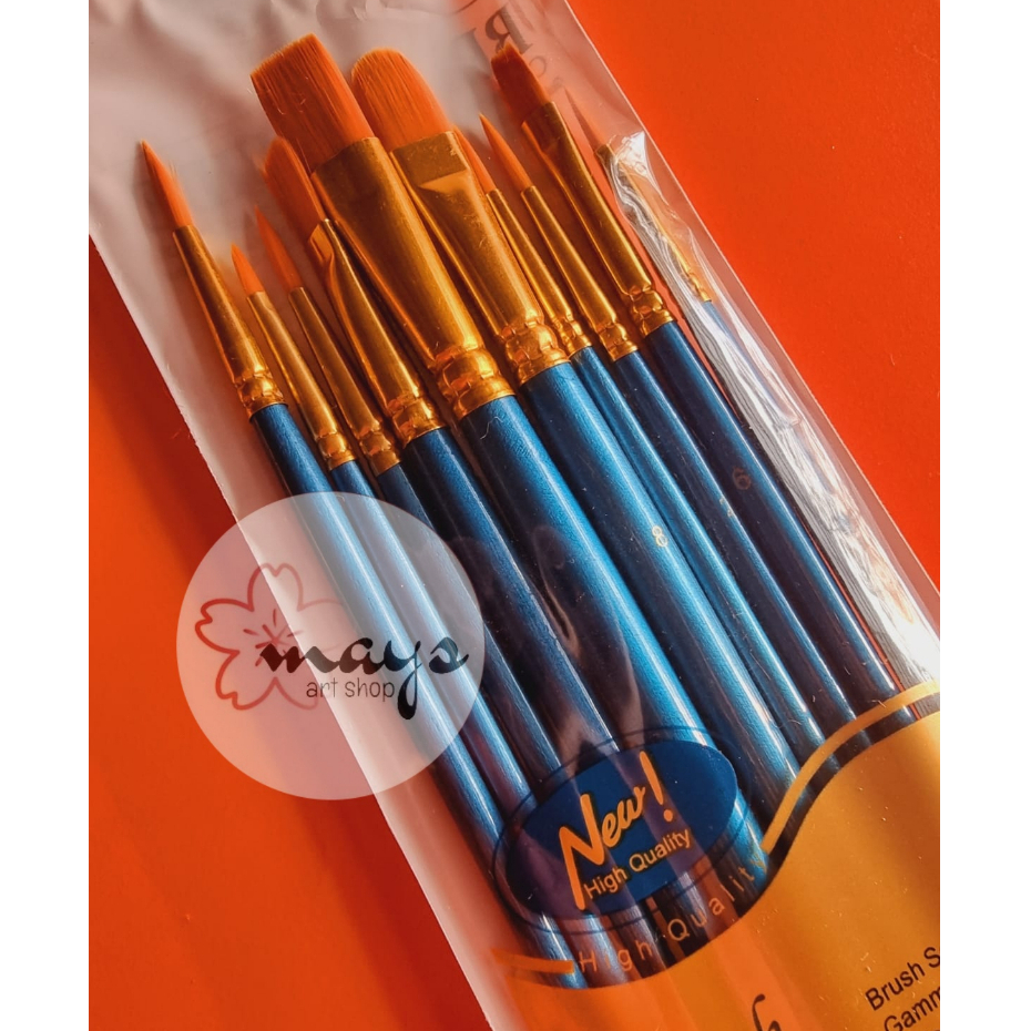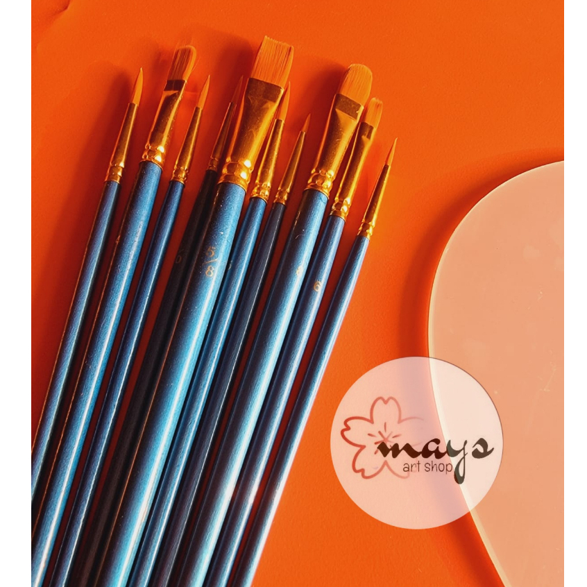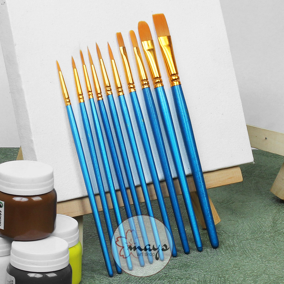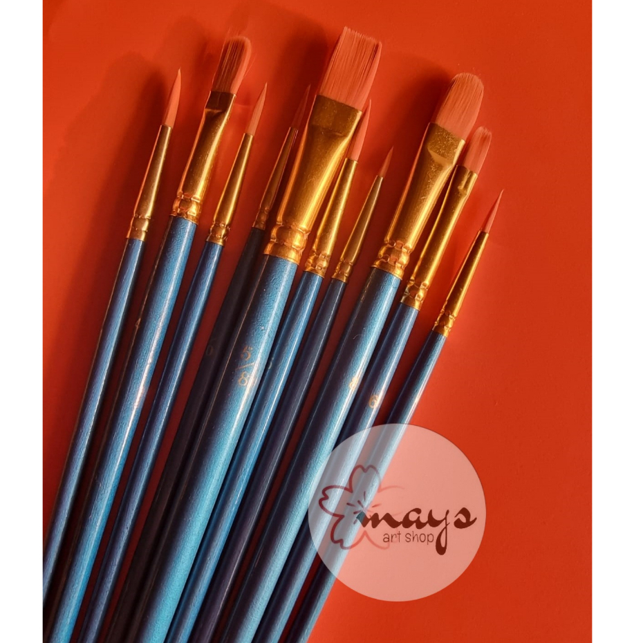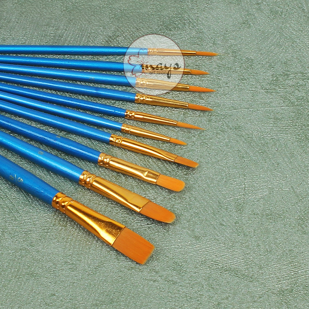 [10 Pcs] Kuas Lukis Set Isi 10 pcs Mix - Nylon Brush 10 pc - Artist Painting Brush Flat Round Filbert Lancip Liner Detai