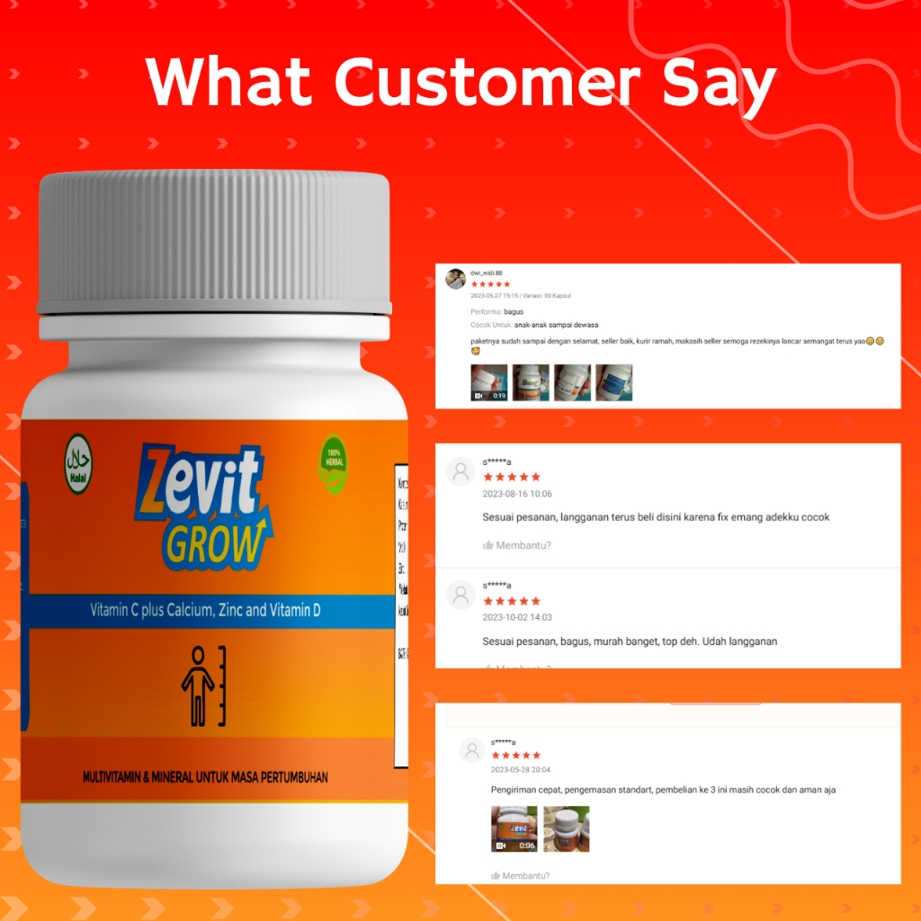 Zevit Grow Kapsul Penambah Tinggi Badan | Kalsium Zinc Vitamin | Untuk Remaja & Dewasa