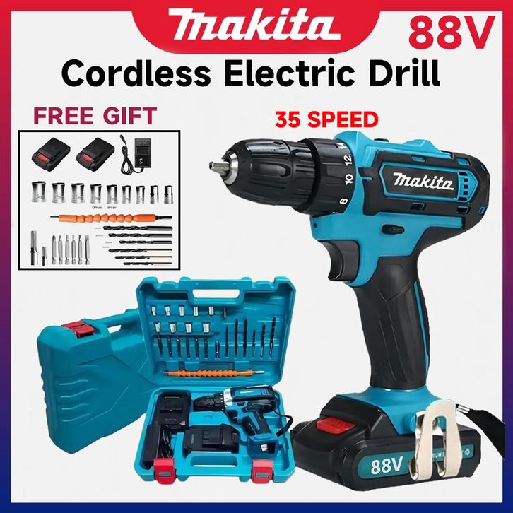 [Star] Mesin Impact Makita / Mesin bor 2Baterai Cas 10mm Murah Bor Tangan Baterai Besi Tembok Beton Kayu Cordless Drill