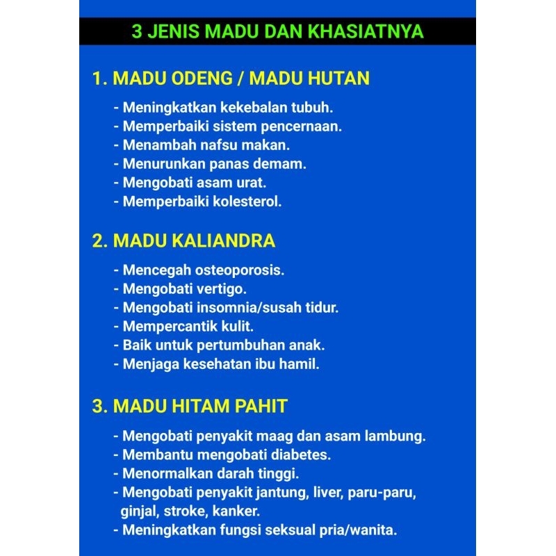 MADU KALIANDRA, MADU HITAM PAHIT, MADU HUTAN ODENG