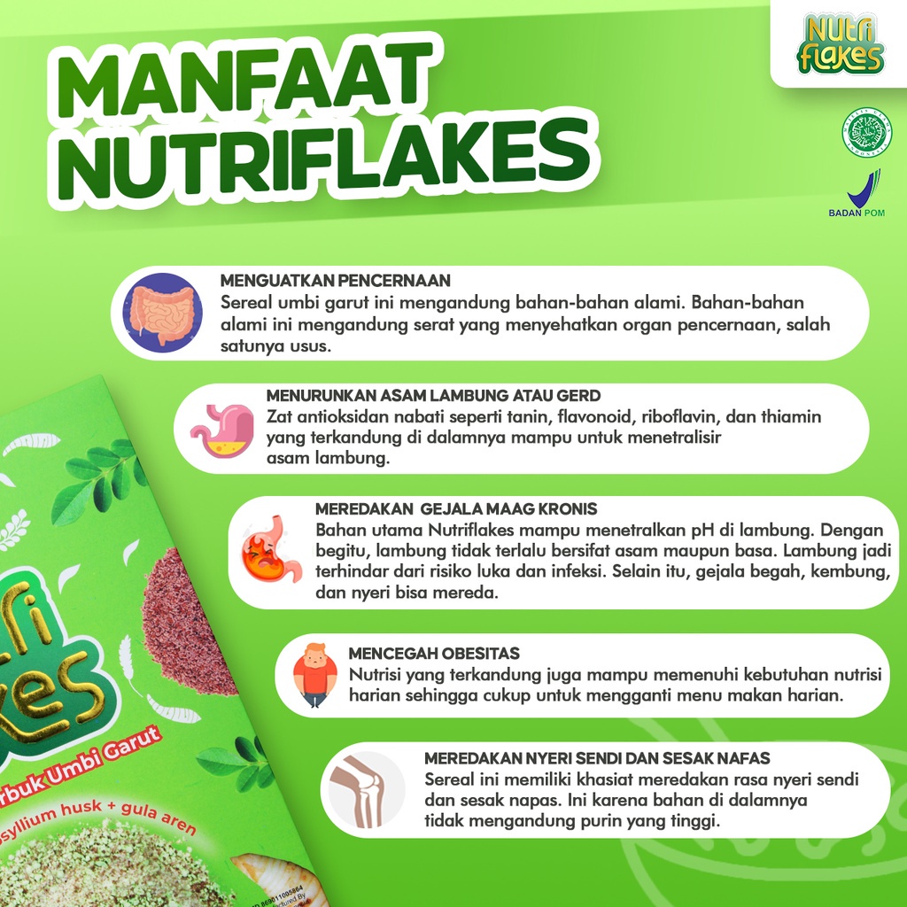 NUTRIFLAKES ORIGINAL - SEREAL UMBI GARUT WITH PSYLLIUM HUSK & DAUN KELOR SEREAL DIET SEREAL ASAM LAMBUNG SEREAL UMBI GARUT SEREAL SARAPAN ORIGINAL NUTRIFLAKES ASLI OBAT ASAM LAMBUNG