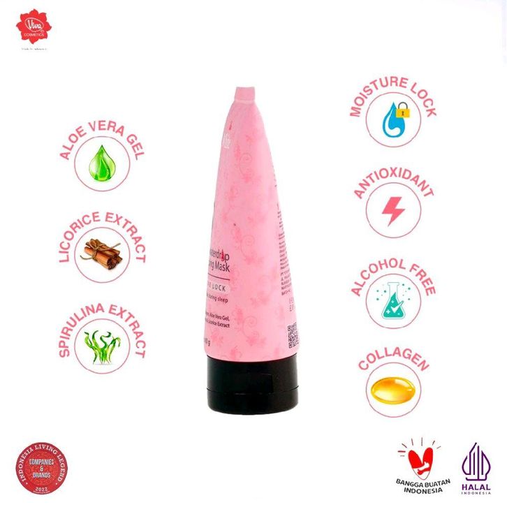 Viva White Waterdrop Sleeping Mask 80gr - Perawatan Wajah Malam Dengan Collagen, Aloe Vera Gel, Spirulina & Licorice - M