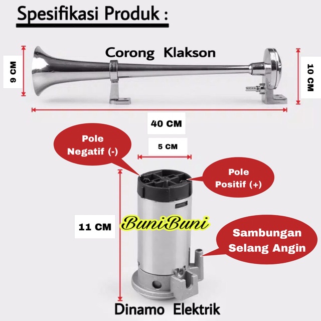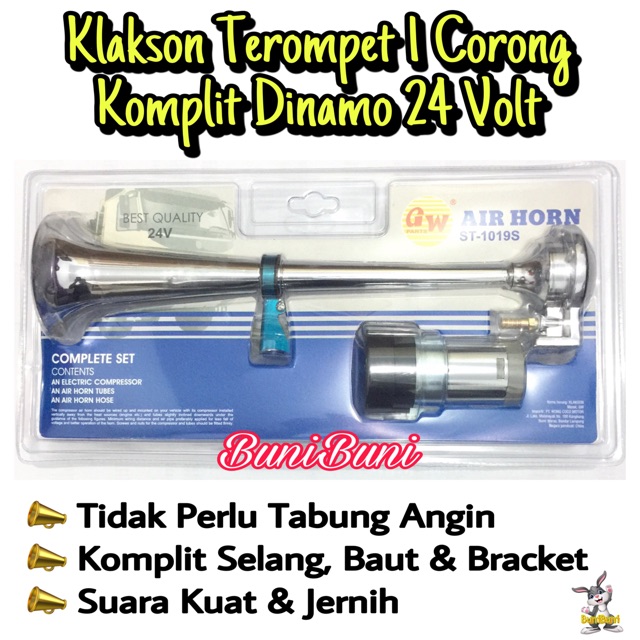 Klakson Terompet 1 Corong Komplit Dinamo Elektrik Mobil 12 Volt & Truk 24 Volt - Klakson Angin Dinamo Mobil 12V - 24V (G