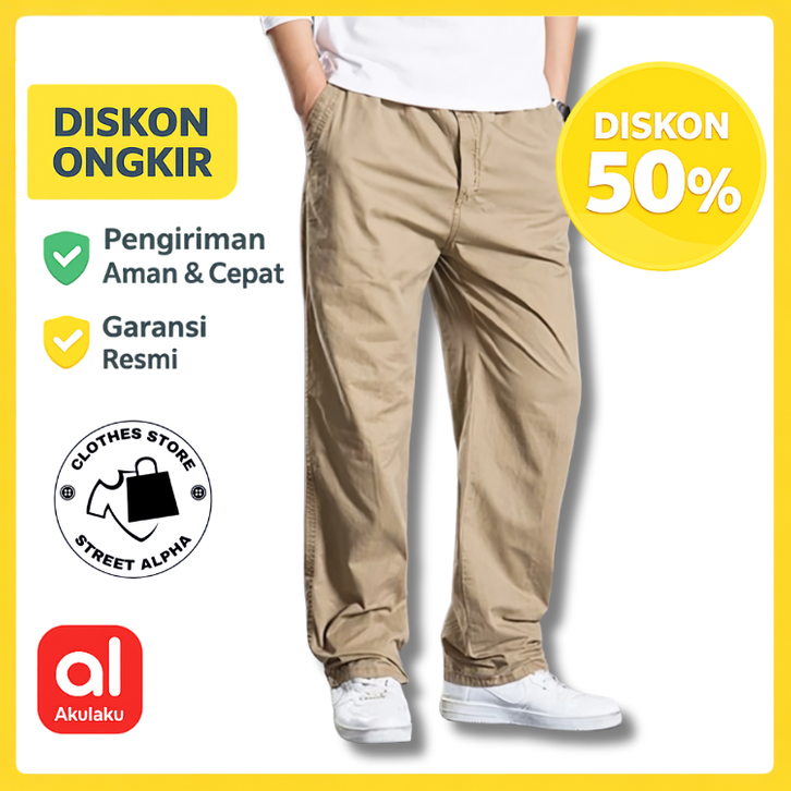 Celana Chino Panjang Pria Standar Reguler Fit Jumbo Celana Chino Baggy Pants Pria Original Premium Bahan Katun Twill