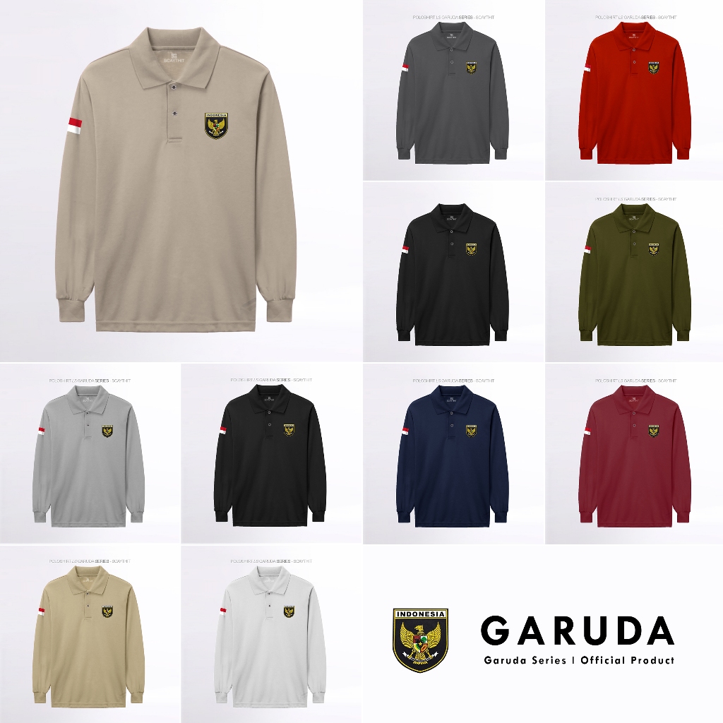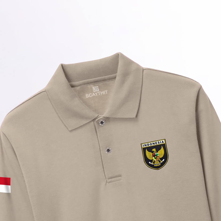 Scaythit Kaos Polo Shirt Unisex Pria Wanita Kerah Lengan Panjang Garuda Indonesia Bendera Merah Putih Print Quality Coksu