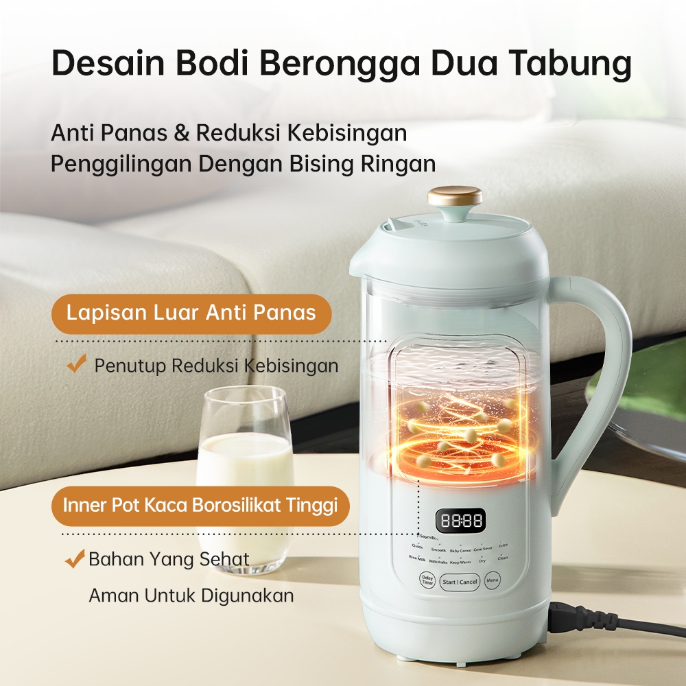 SOSEKI Pembuat Susu Kedelai 1000mL Multifungsi - Blending Visual, 11 Menu, Anti Panas & Bising
