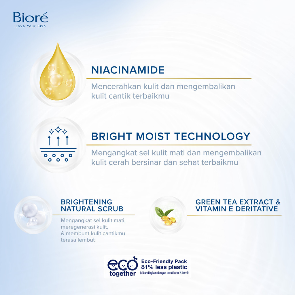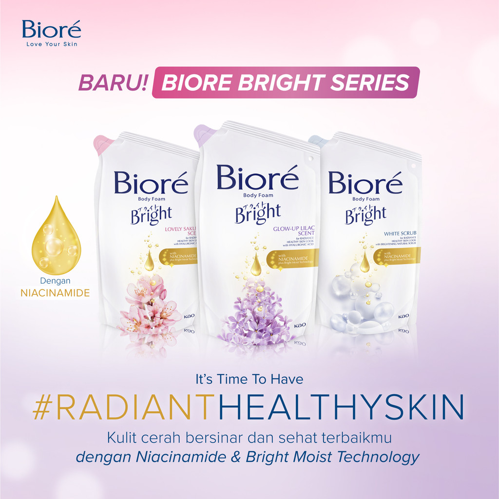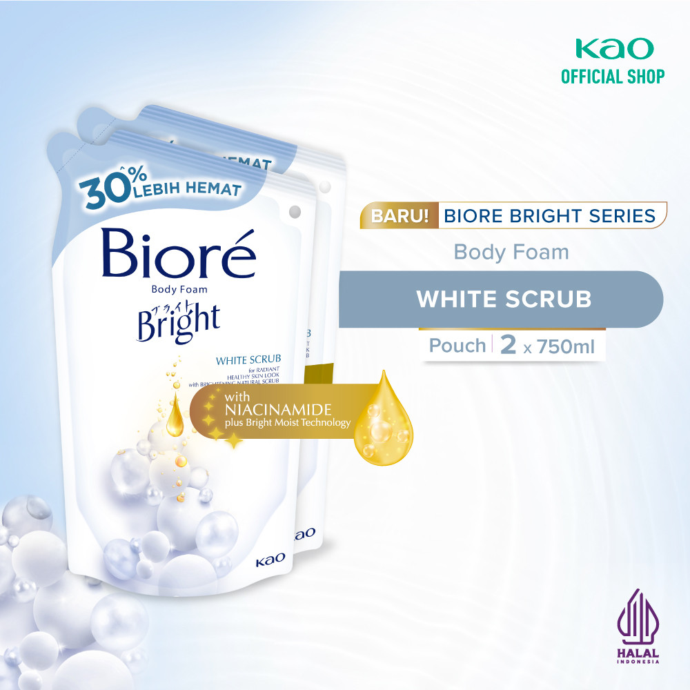 Biore Bright Body Foam Sabun Mandi Cair White Scrub Dengan Niacinamide & Vit E 750ml Twin Pack
