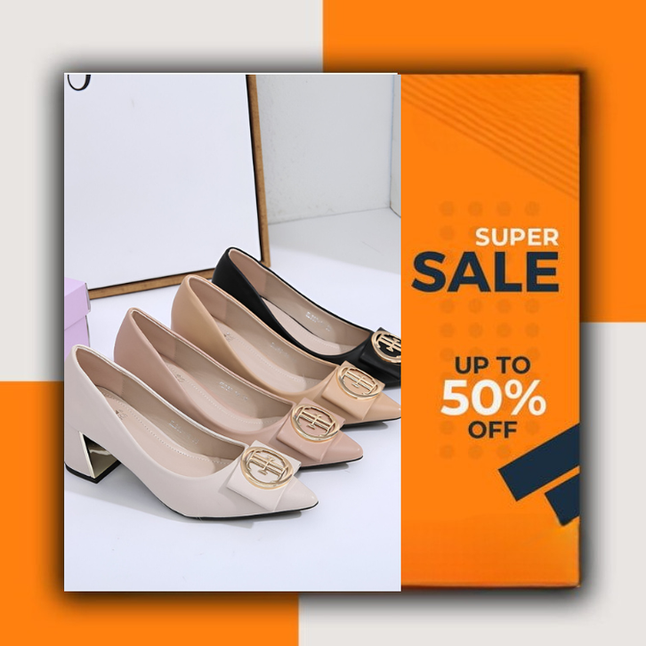 [Star]EL 360-14 Sepatu Hak Wanita Kerja Block Heels Import 6cm