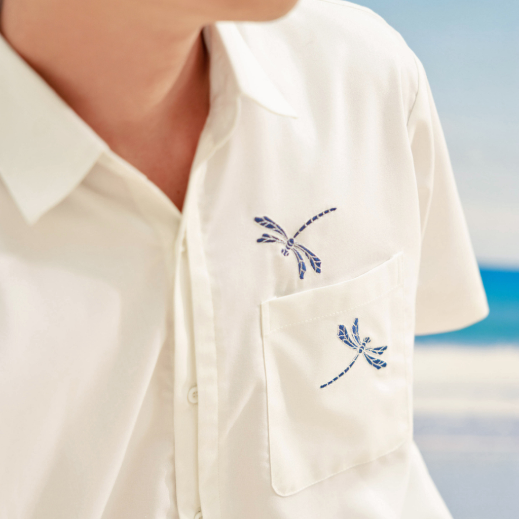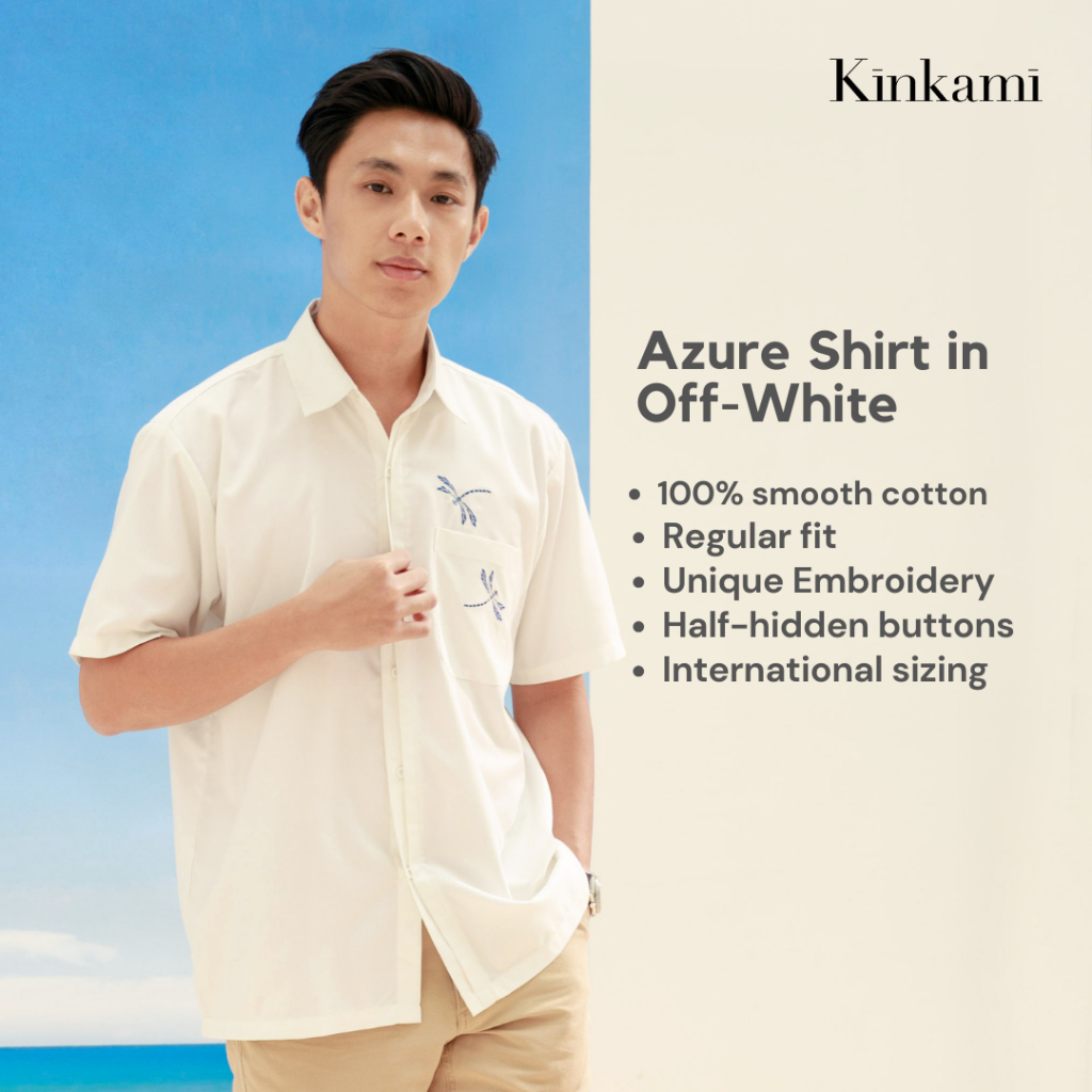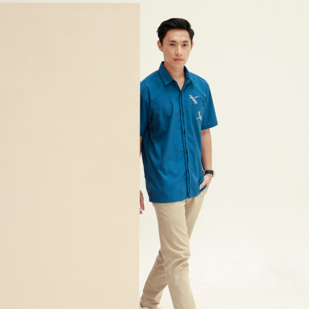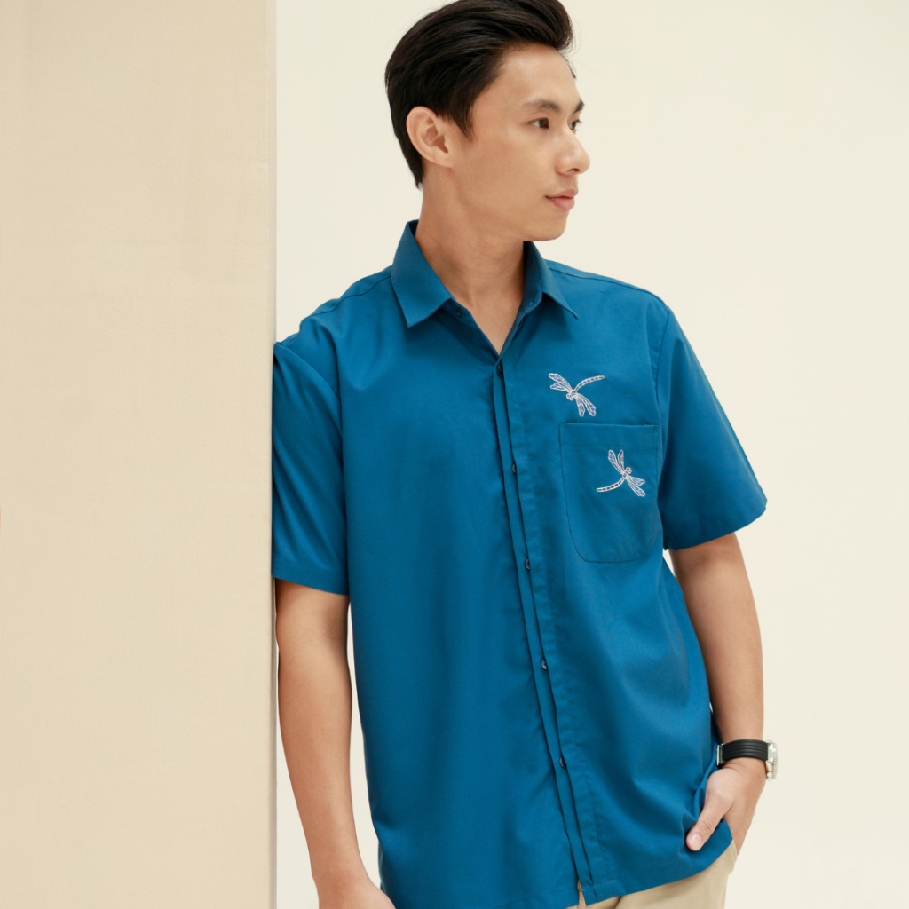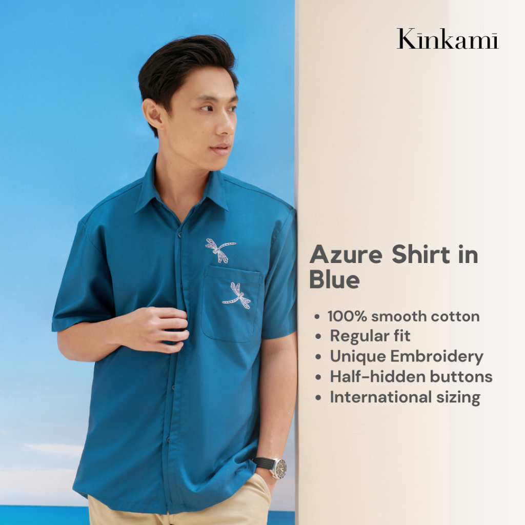 Kemeja Pria Lengan Pendek Premium Bordir | AZURE Blue Shirt by Kinkami