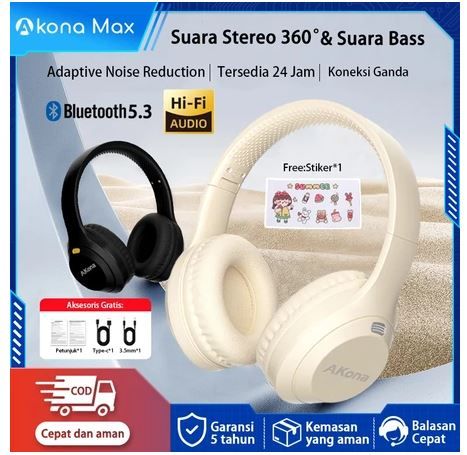 Akona Headphone Bluetooth 5.3 Hifi Bass Wireless Gaming Headset Bluetooth With Mic HD Noise Reduction Suara Sekitar 360°