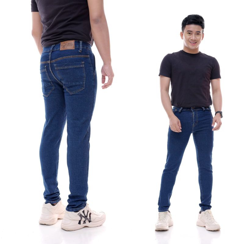 Celana Hitam terlaris Original Ori Pria Jeans Panjang Pensil Skinny Semi Slim Fit Cowok Cowo Pria Bahan Denim Stretch Terbaru