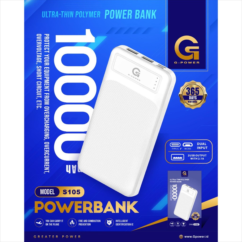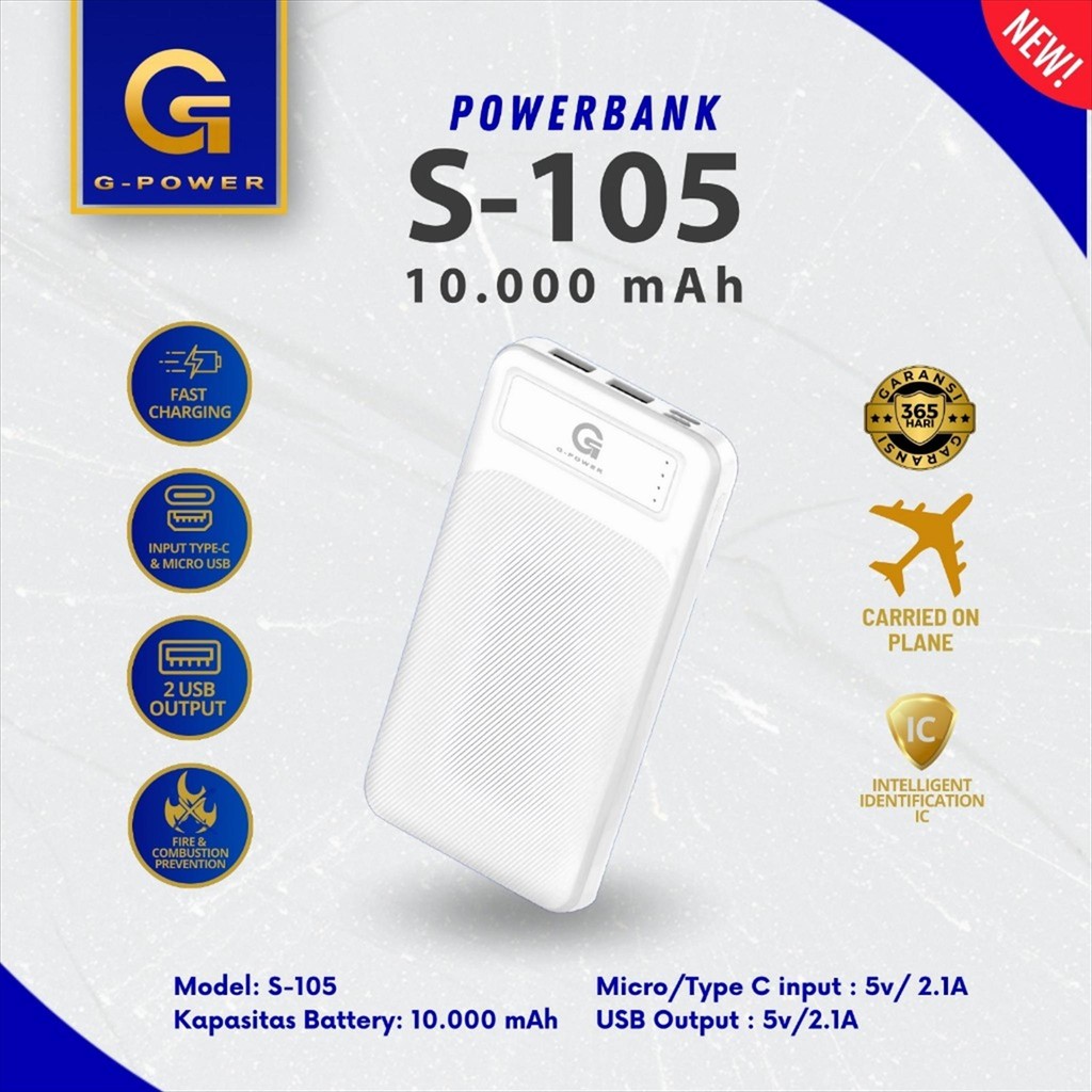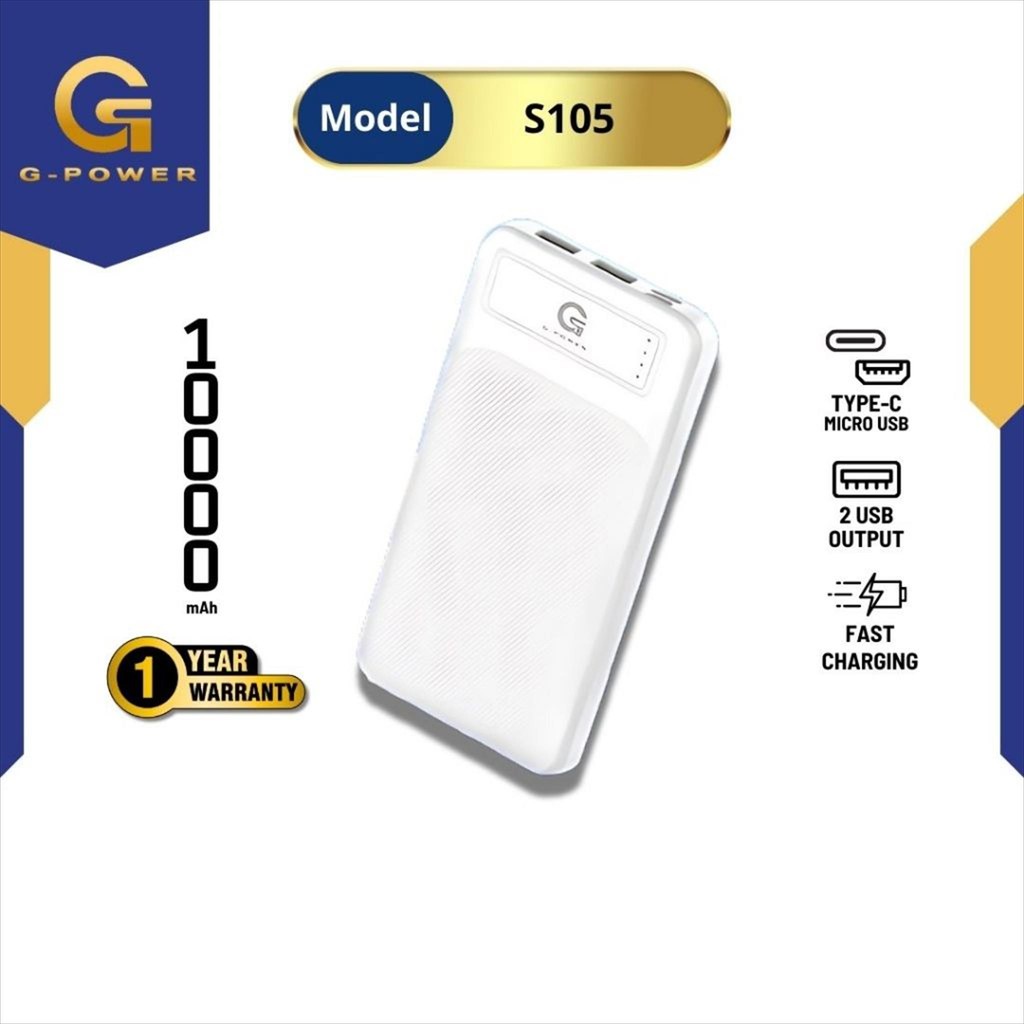 G-POWER Powerbank S-105 10000mAh Fast Charging Real Capacity Dual Input Port Type C & Micro Usb
