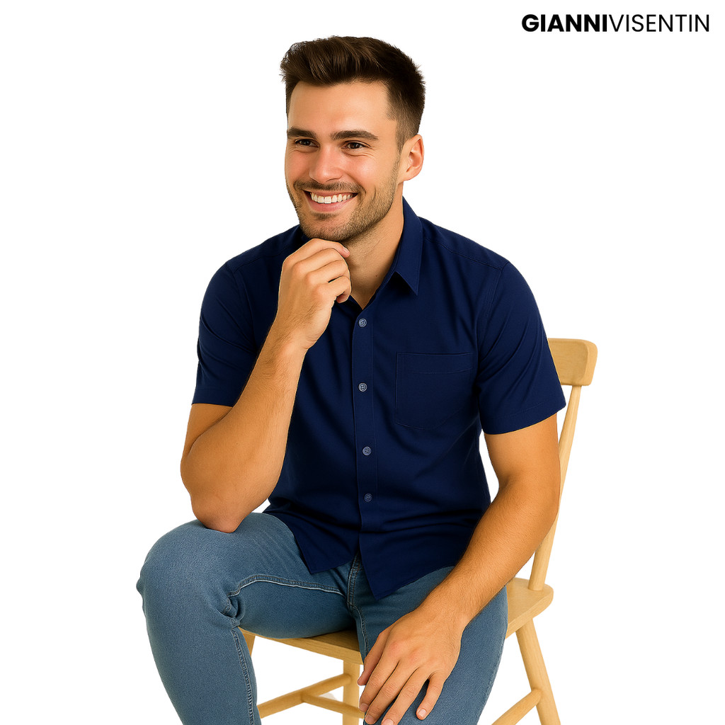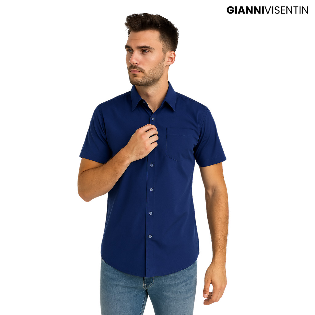 Gianni Visentin Kemeja Lengan Pendek Pria Slim Fit - Biru Tua