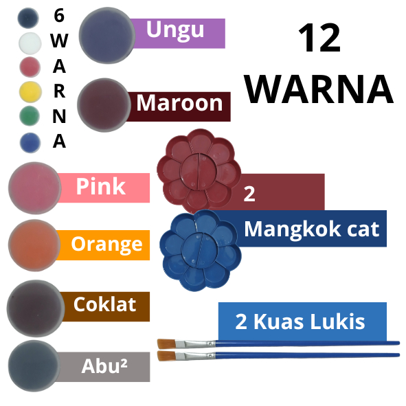 PAKET CAT LUKIS 10 ML ISI 6 WARNA DAN 12 WARNA (FREE KUAS DAN MANGKOK CAT)