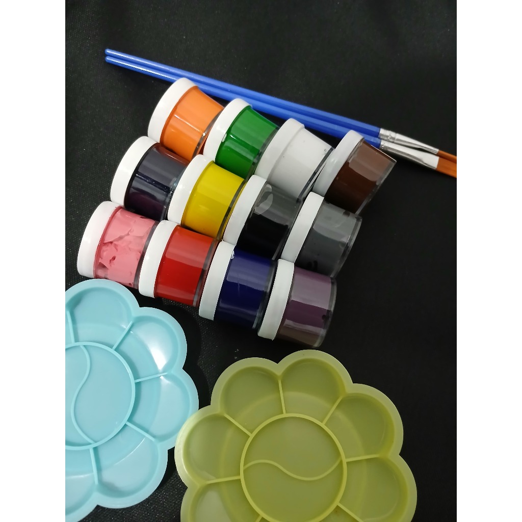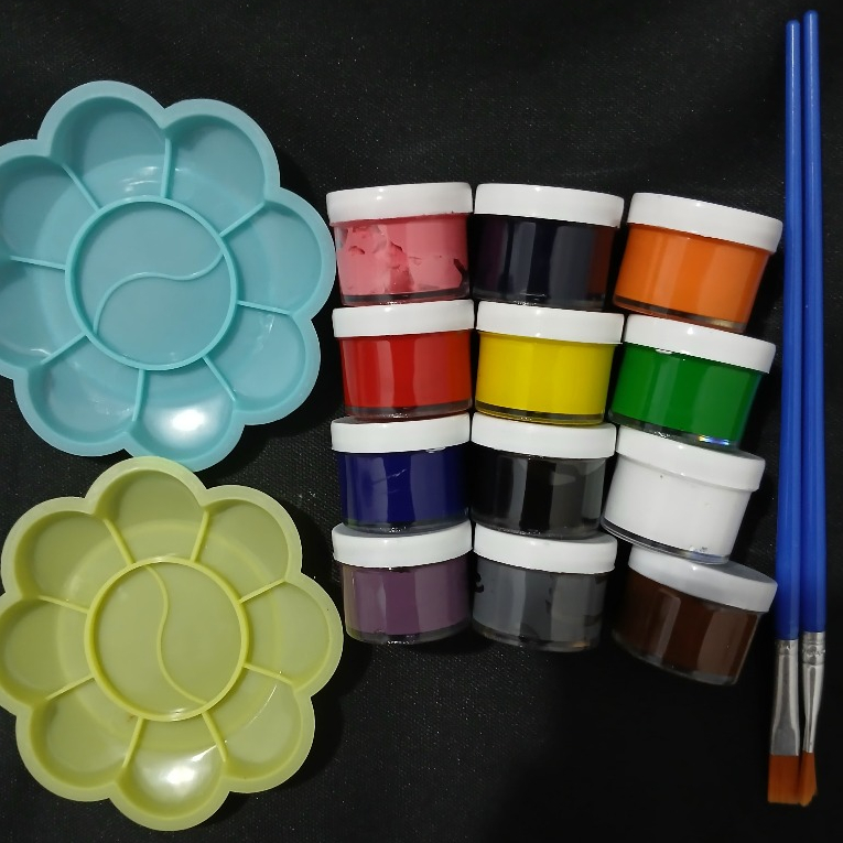 Paket Isi PALET, CAT LUKIS RYLIC 10 ML 6 dan 12 warna FREE KUAS ( PROMO PEMBELIAN 10 PAKET FREE GAMBAR 2000 - 3000 GAMBA