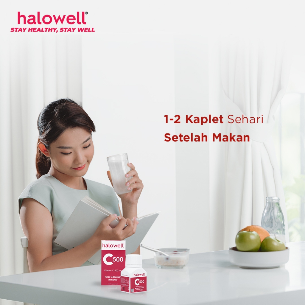 Halowell Vitamin C 500mg 1 Botol x 30 Kaplet ( Suplemen Kesehatan / Menjaga Kesehatan / VitaminC / Vit C )