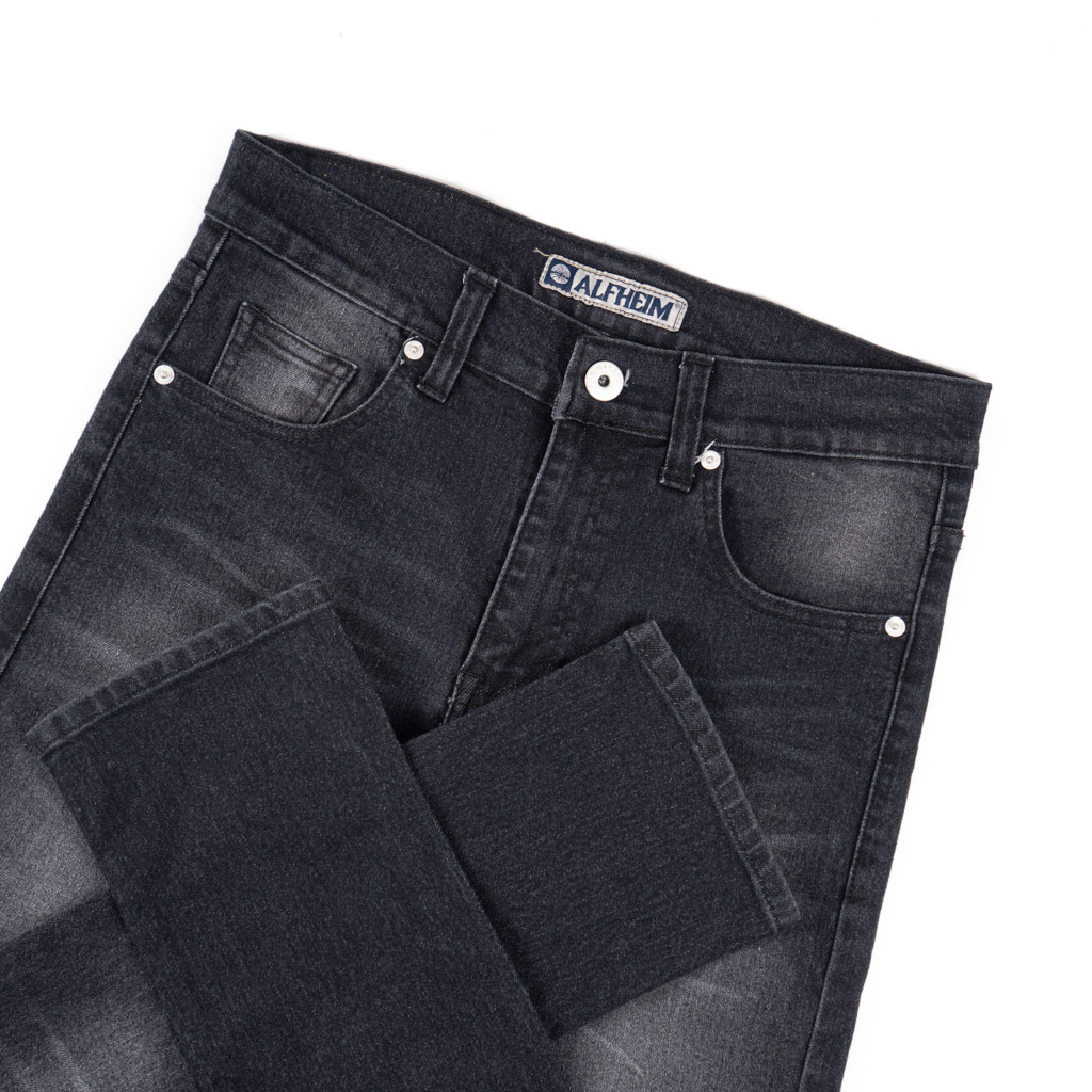 AlfheimCloth.Inc Celana Jeans Long Pants Denim - Slim Fit Men Scrap Black Whisker Denim S, M, L, XL