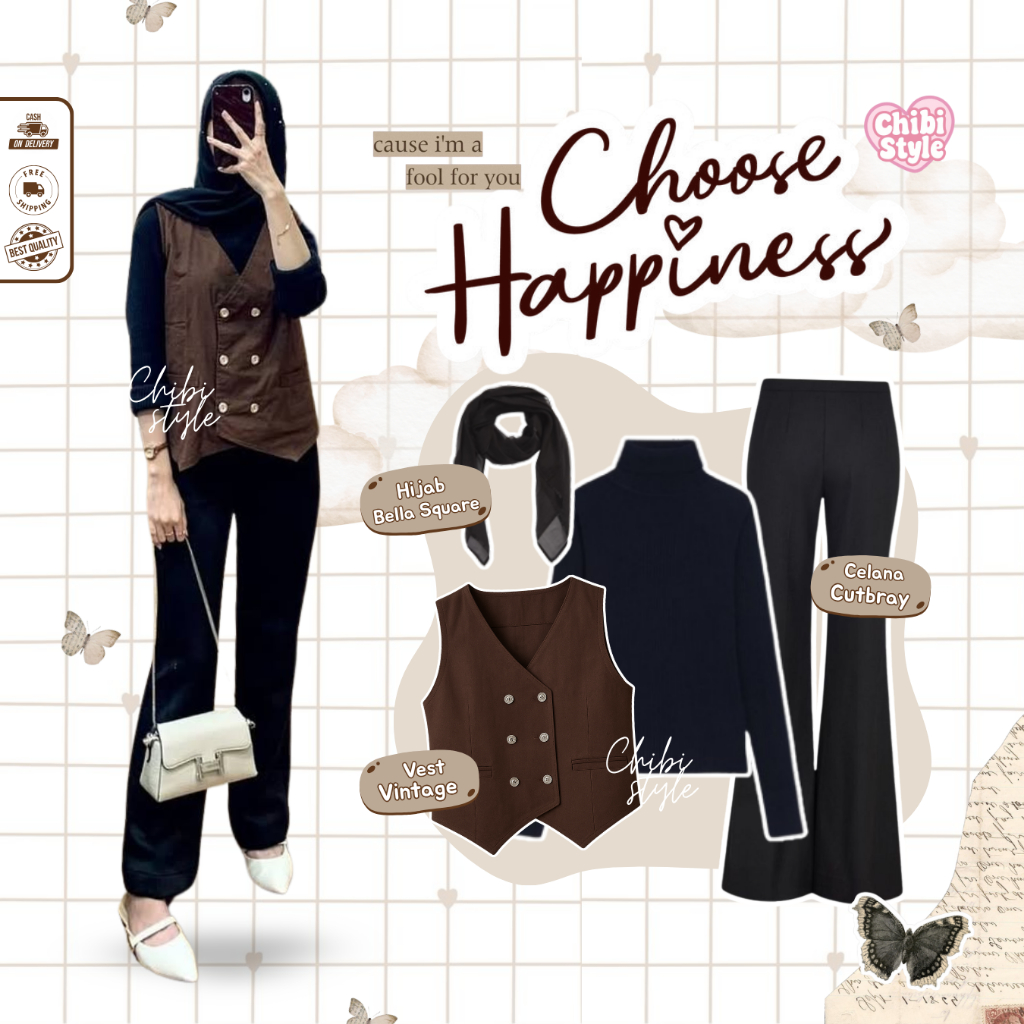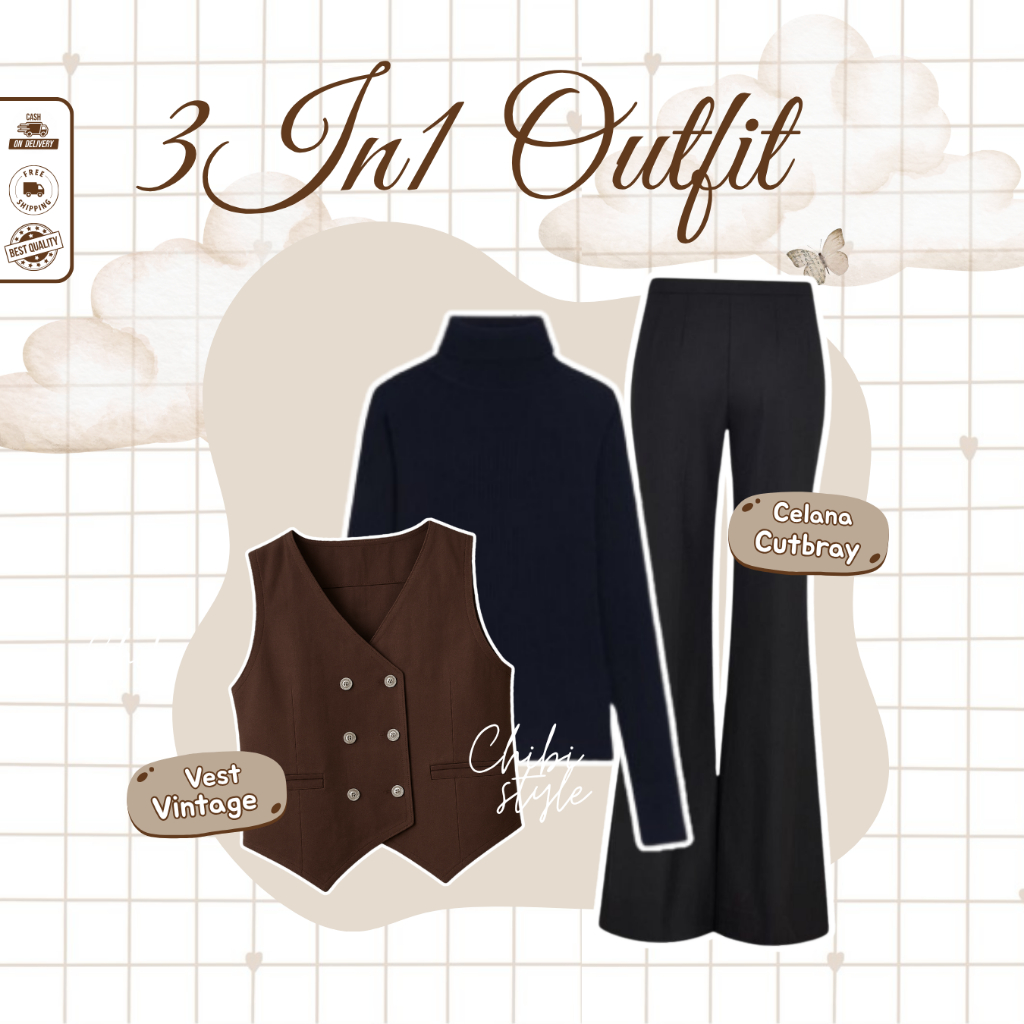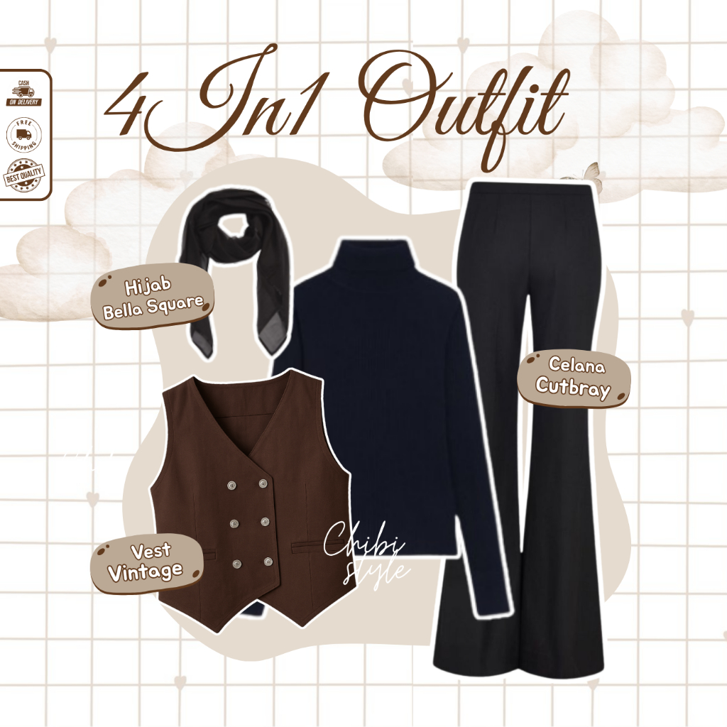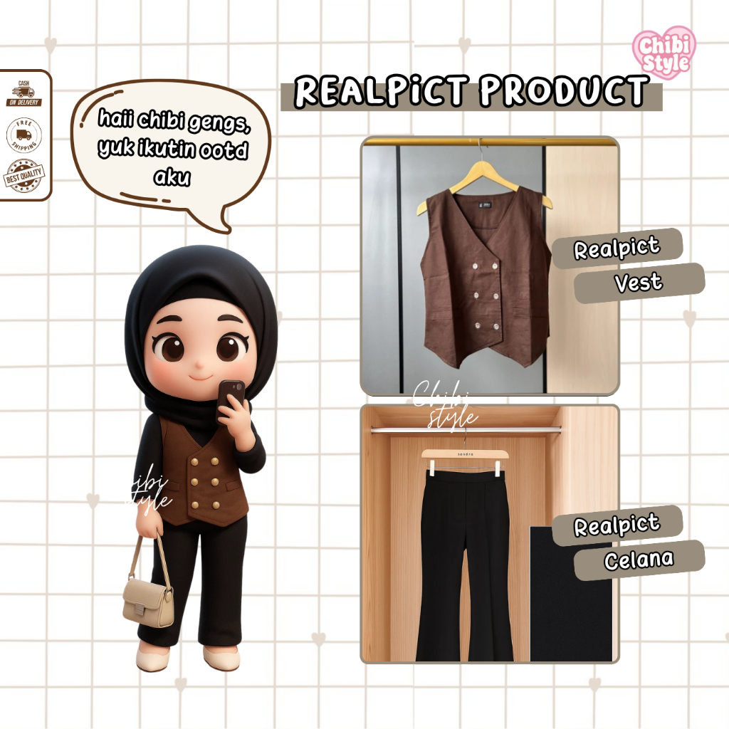 One Set Wanita Kekinian Korea Hijab | Hijab Bella, Vest Korean, Celana Cutbray | Set Hijab Ootd CS20