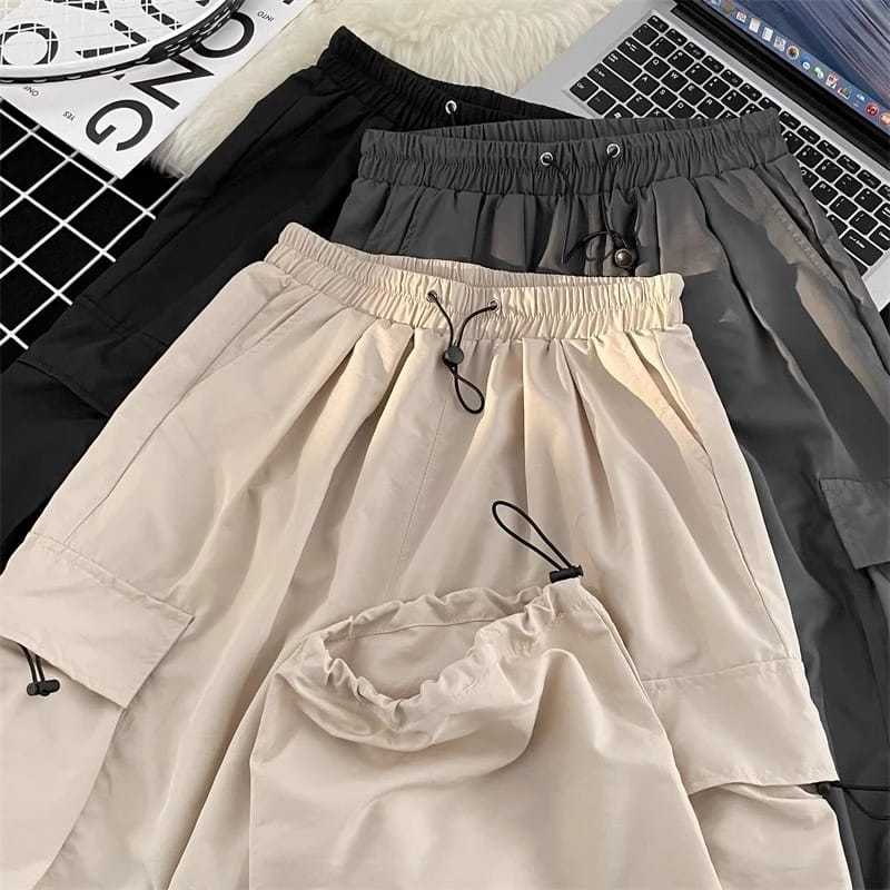 Cargo Pants Wanita Highwaist Loose Pants Korean Style Jumbo - Celana Cargo Wanita Terbaru
