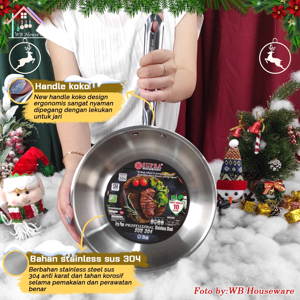 SUPRA Panci fry pan set 24cm + steamer + tutup kaca viliron stainless steel SUS 304 professional chef series / penggoren