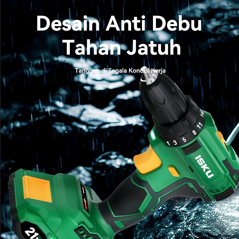ISKU Motor Tanpa Sikat Bor Listrik 21V Bor Impact baterai Cordless Untuk Besi Tembok Beton Kayu Mesin Bor baterai Motor