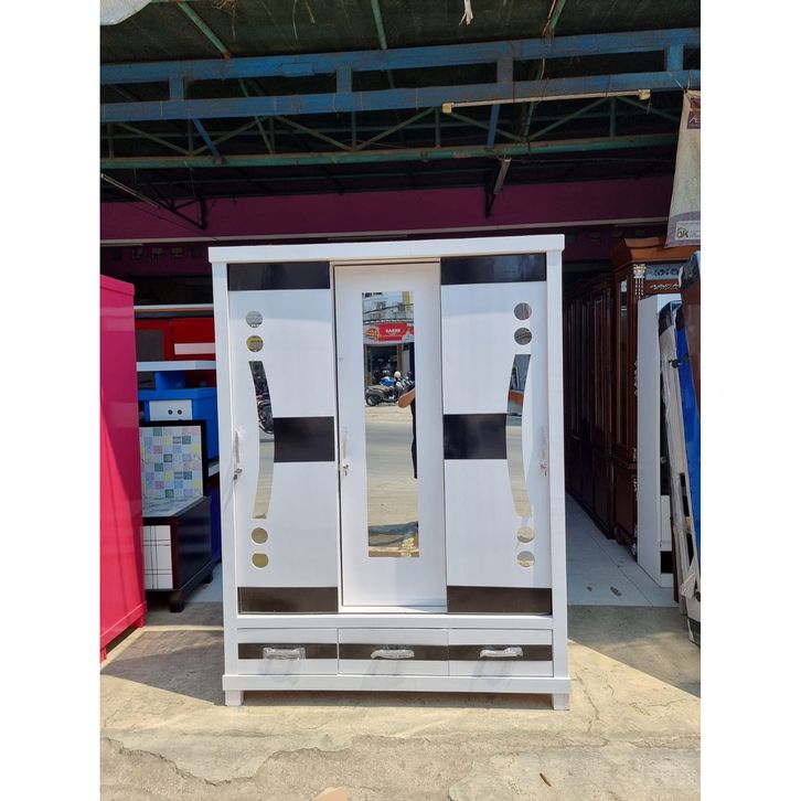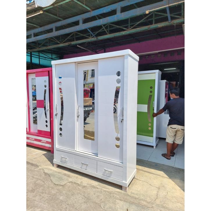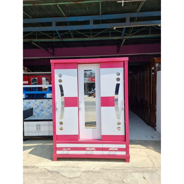 LEMARI PAKAIAN 3 PINTU SLIDING KACA LEMARI KAYU JATI MINIMALIS/LEMARI PINTU GESER/LEMARI KAYU BEST SELLER PROMO MURAH