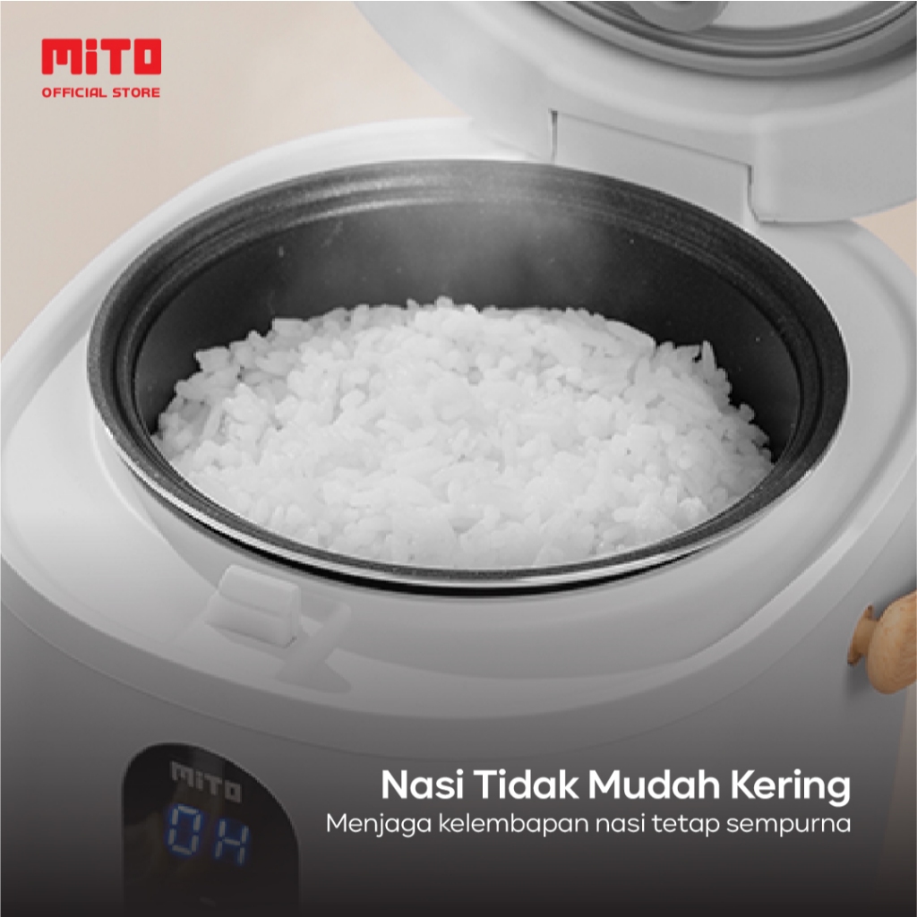 Rice Cooker Mini MITO R11 0,5L Handle Kayu - White Gratis Ongkir