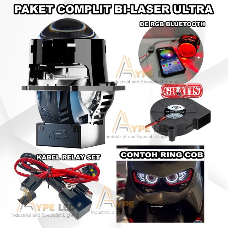 LAMPU BILED AES TURBO BI-LASER PROJECTOR BILED 3 INCH ULTRACOOLER TIR TECHNOLOGY 75 WATT BI-LASER AES GRATIS ONGKIR