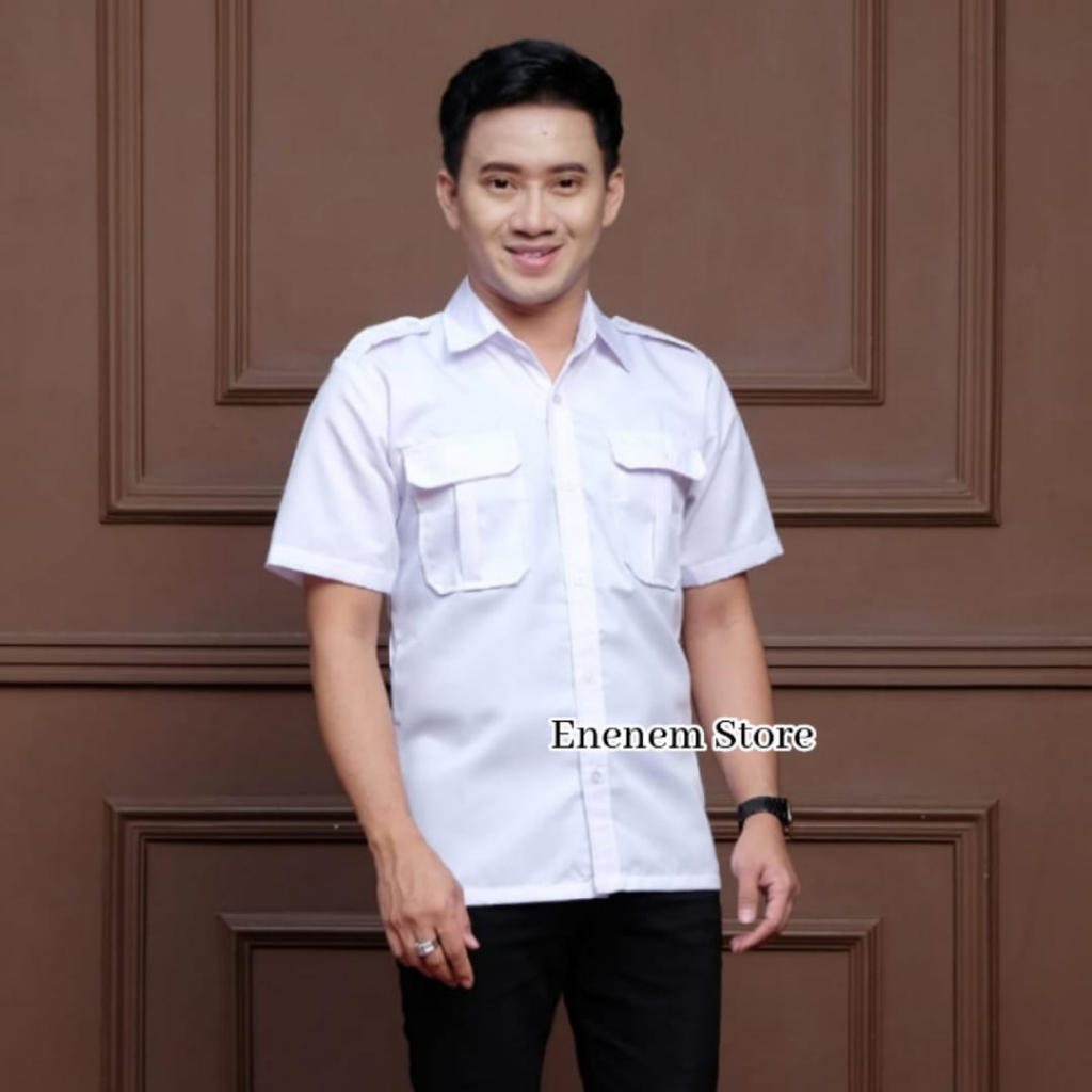 Seragam PDH Pria Putih Lengan Panjang Baju DinasPutih Pria Japan Drill Baju Dinas Pegawai Satpam