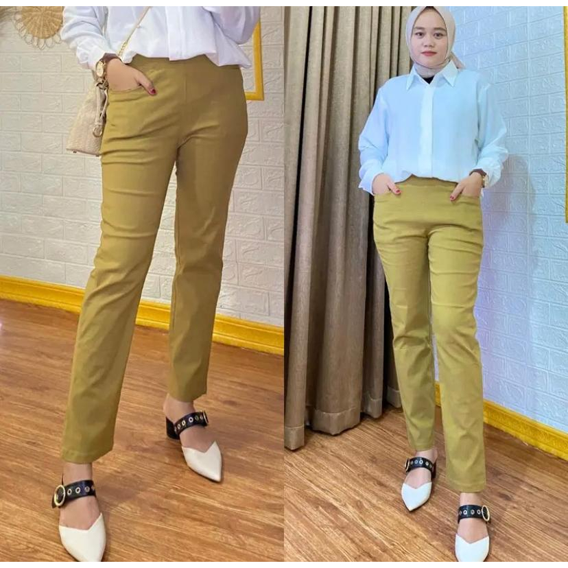 (WARNA LAIN) Office Pants Bahan Soft Jeans Strecht Melar Premium Celana Kerja Kantor Wanita Nyaman Panjang Warna Lain