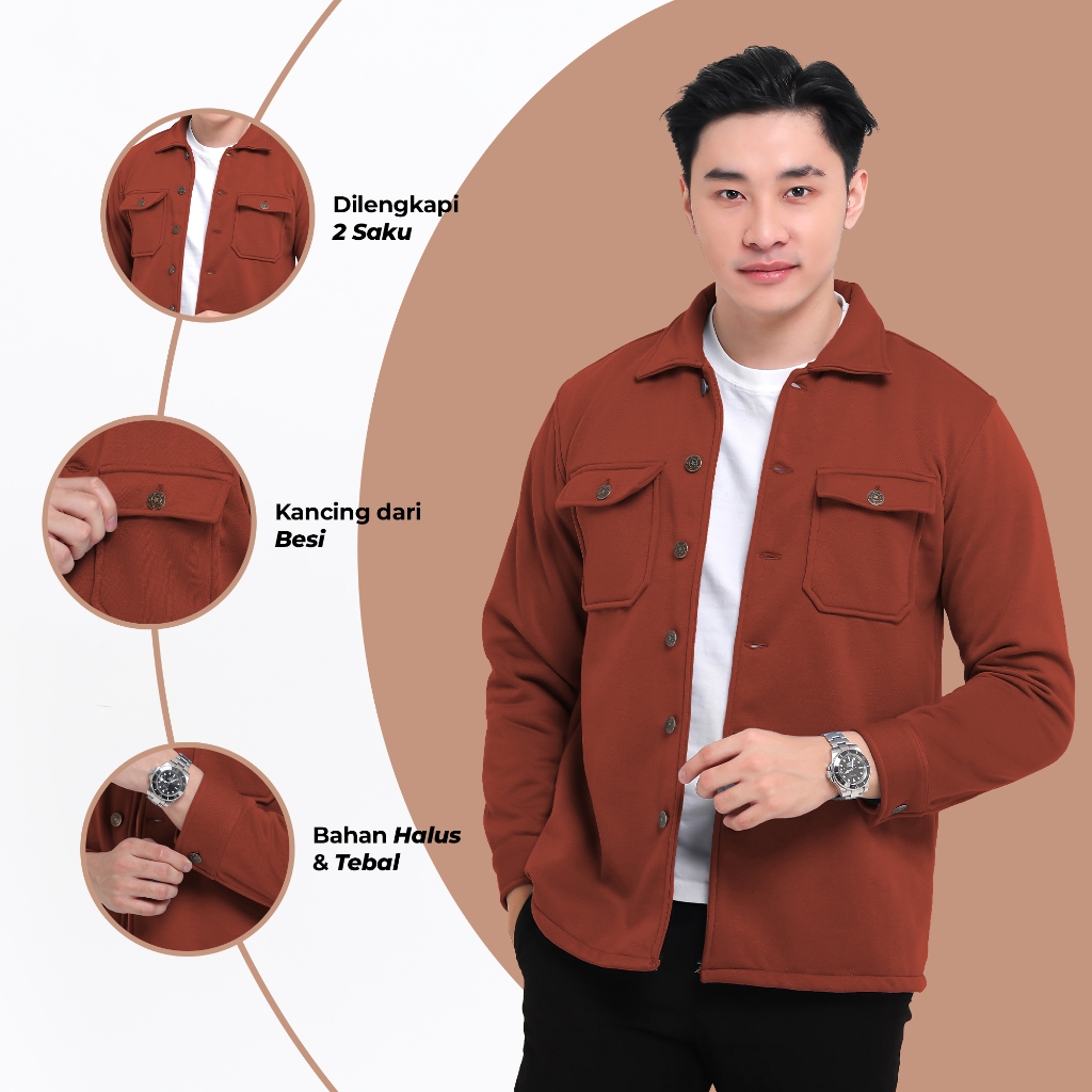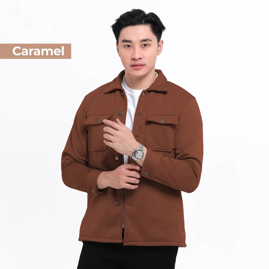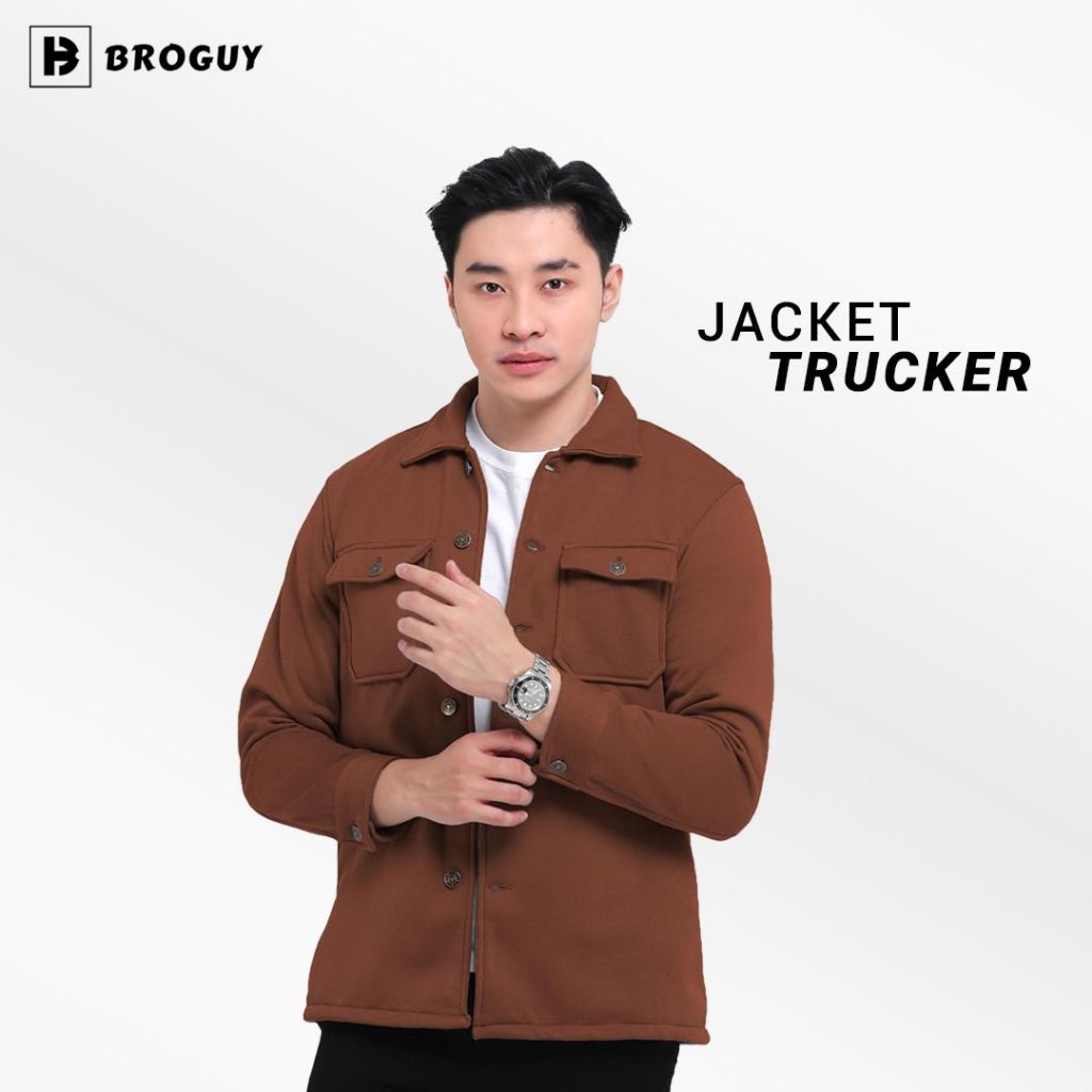 Broguy Jaket Trucker Pria Fleece Caramel M-XXL