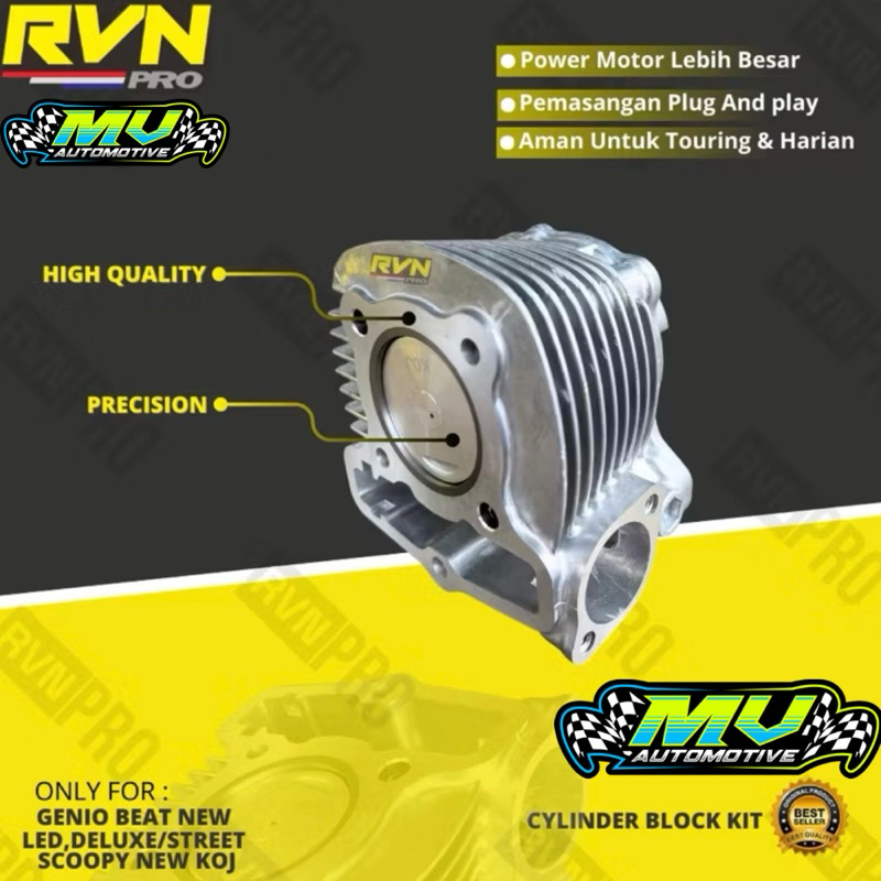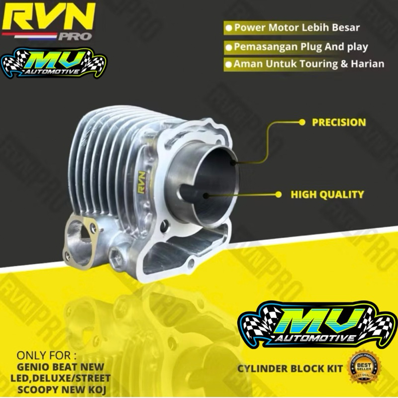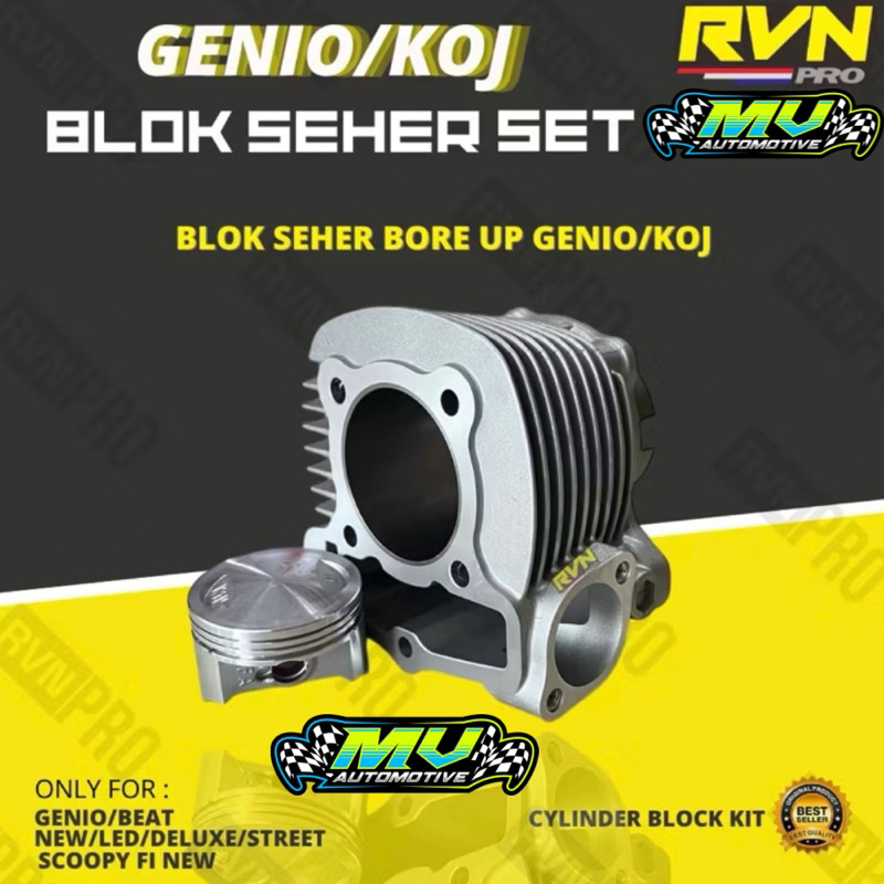 BLOK BLOCK SEHER BORING STANDAR 47MM - BORE UP 53MM GENIO BEAT NEW BEAT LED BEAT DELUXE BEAT STREET SCOOPY FI NEW PLUS PISTON KIT KOJ RVN BONUS PAKING