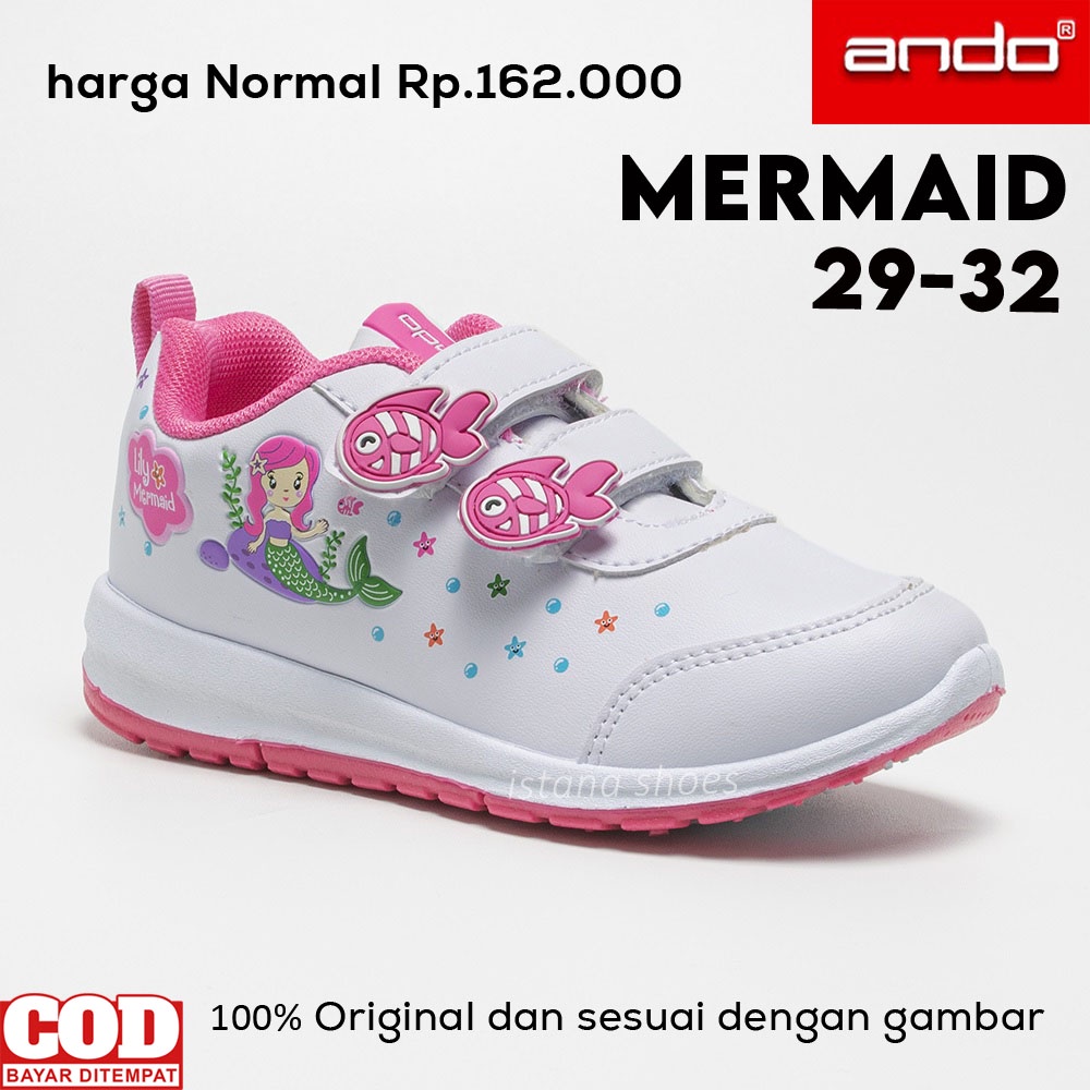 SEPATU SEKOLAH ANAK PEREMPUAN PAUD TK SD ANDO LILI MERMAID, SEPATU ANAK 4 5 6 TAHUN KARAKTER