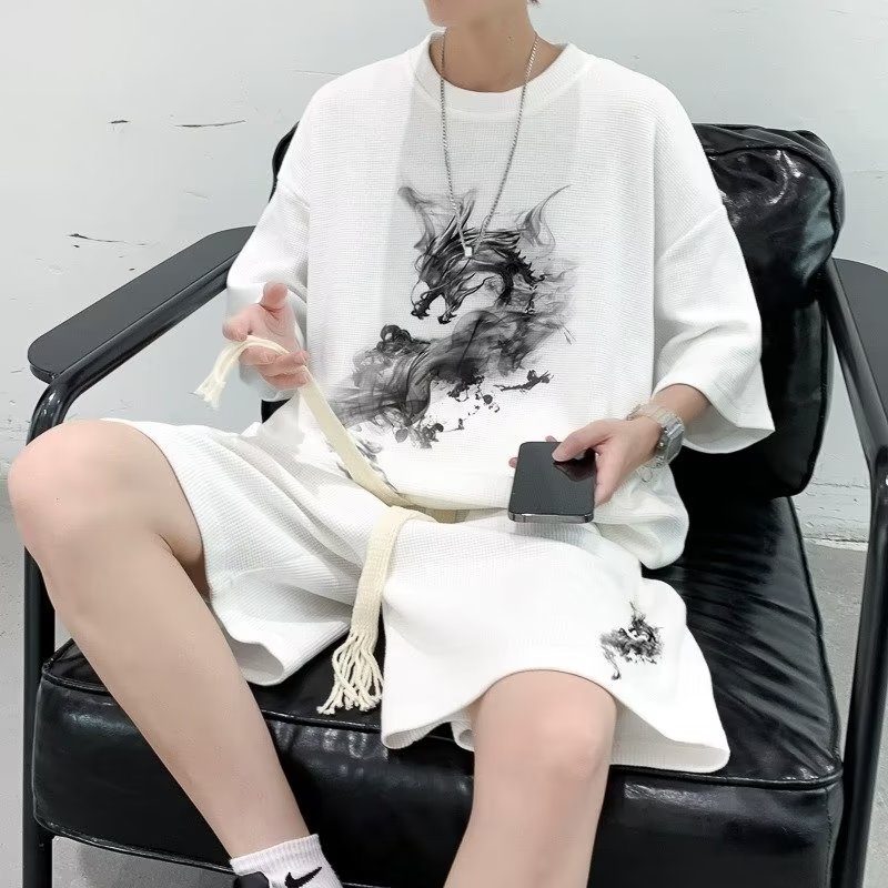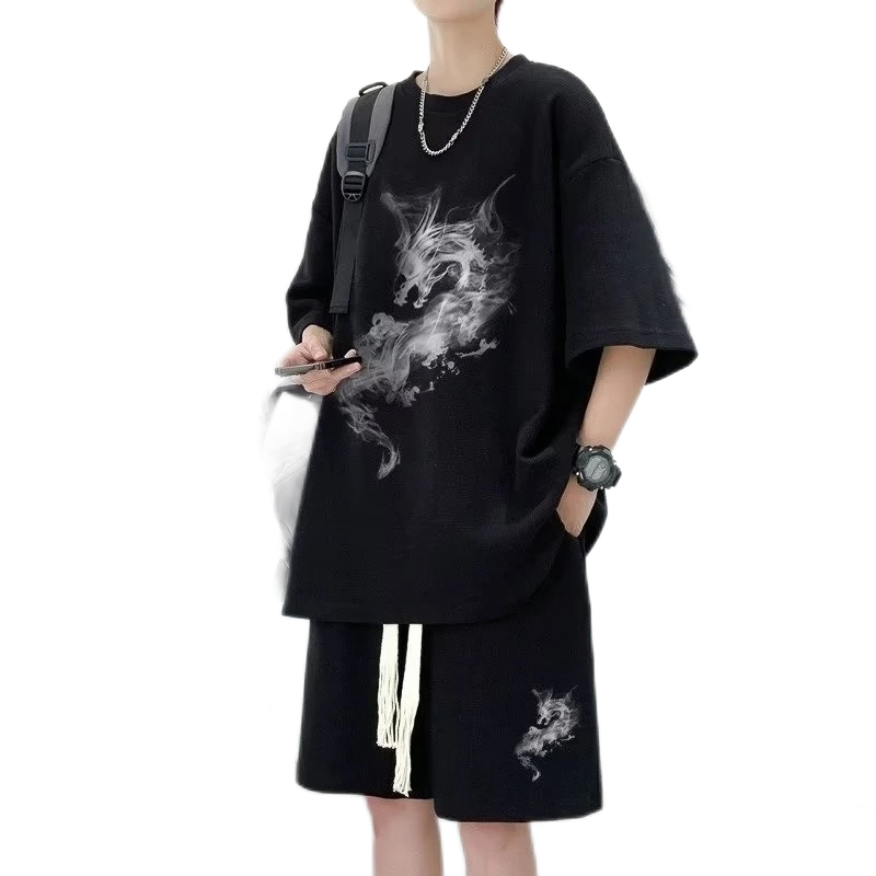 Ssmy TZ31 Naga Sablon Premium One Set Unisex Celana+Baju Premium Oversize Wanita And Pria Fashion