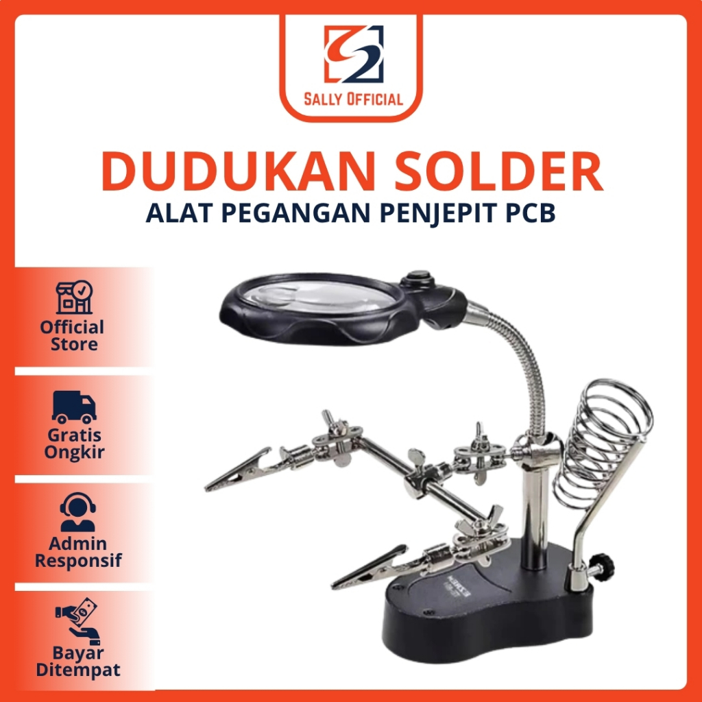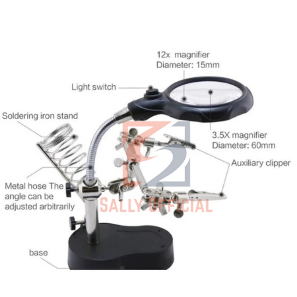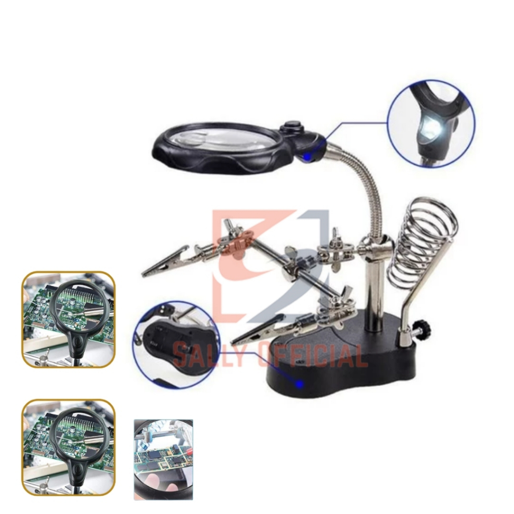 Alat Pegangan Solder Helping Hand Penjepit PCB Dudukan Solder + Kaca Pembesar
