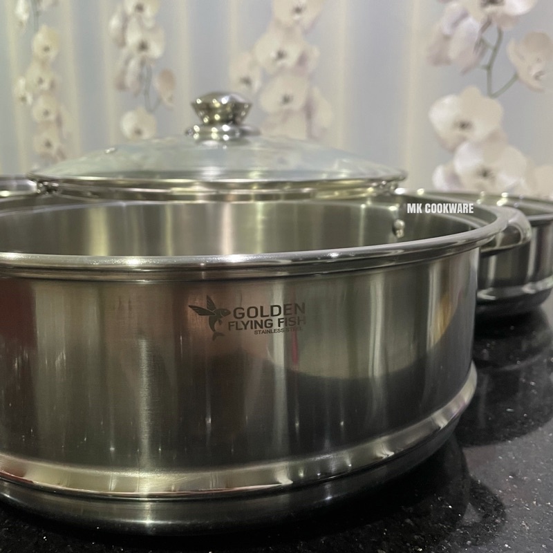 Golden Flying Fish - Steamer Set 3 Susun 30cm - Stainless Steel - Panci Kukusan Tingkat - STMR01330 STMR01330G - SNI & A