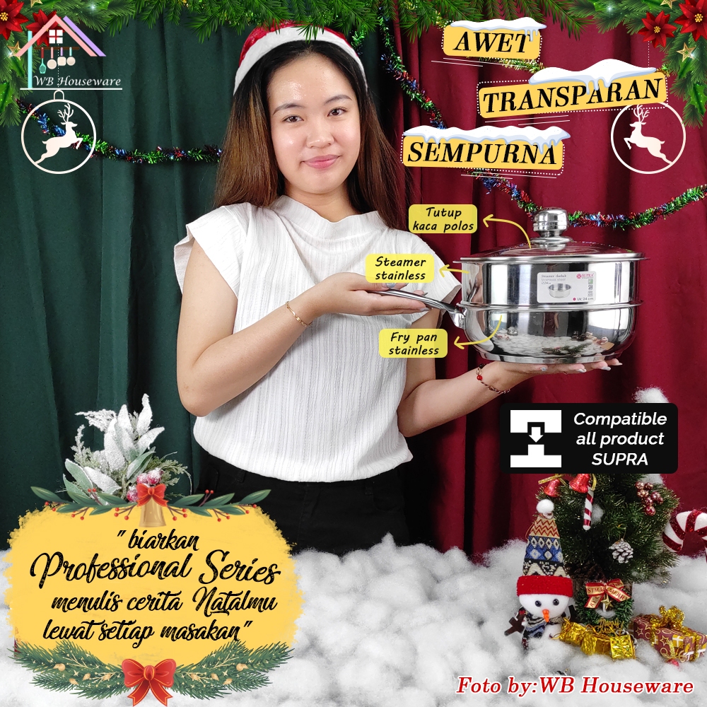 SUPRA Panci fry pan set 24cm + steamer + tutup kaca viliron stainless steel SUS 304 professional chef series / penggoren