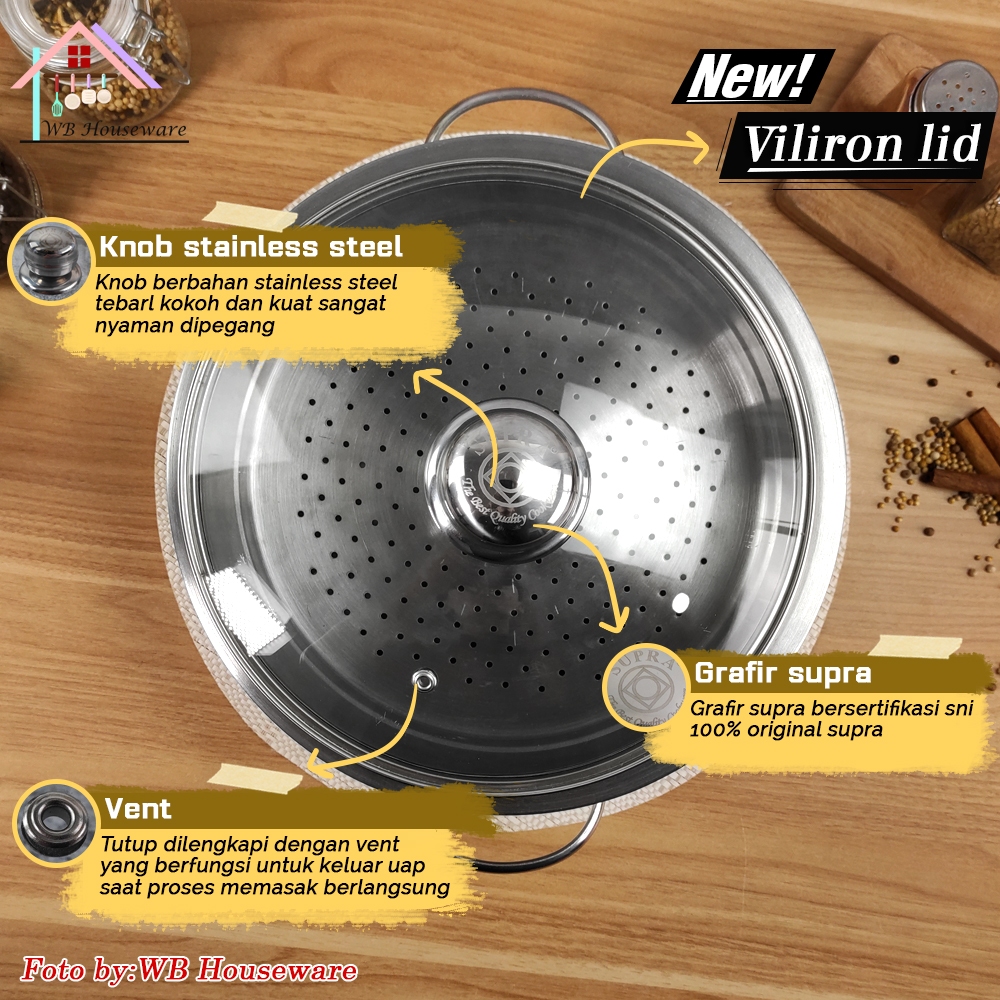 SUPRA wok 24cm + steamer + tutup stainless steel impact SUS 304 professional series / panci wajan penggorengan handle ku