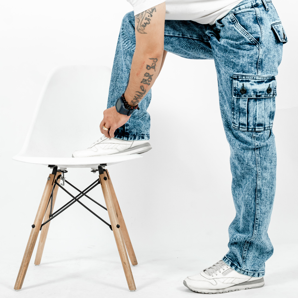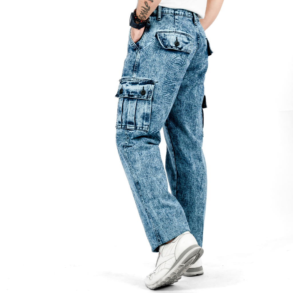 Gizmo Celana Cargo Jeans Pria Loose fit reguler gombrong Skena / Cargo pants Jeans Reguler Standard Denim washed Blue sandwash