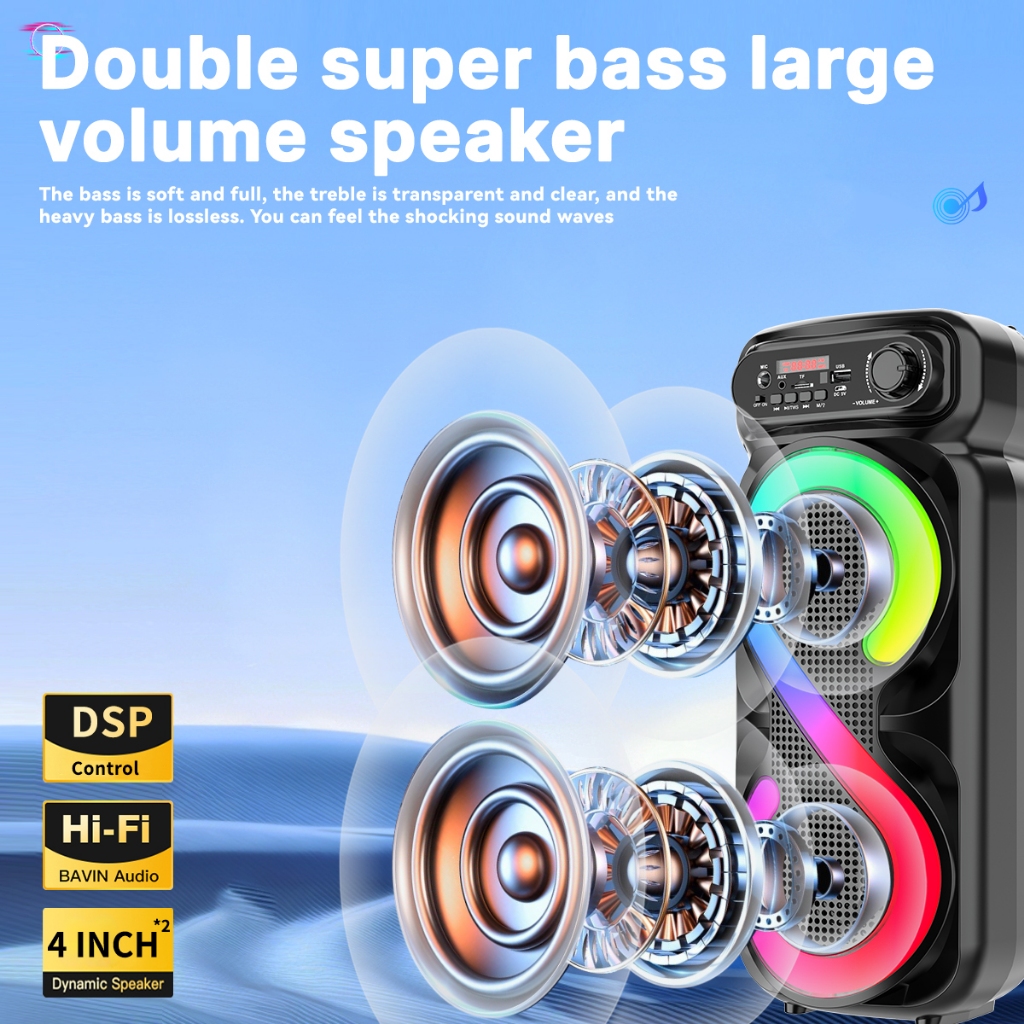 MAIKET Speaker Bluetooth Karaoke 4 Inch *2 Super Bass Dual Speaker Wireless Portable Salon ZQS4270