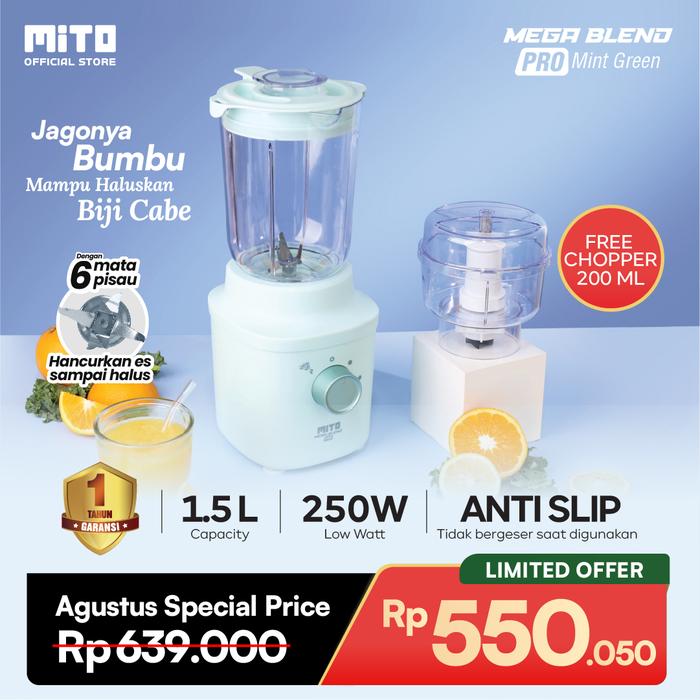 MITO MEGA BLEND PRO BL300 - 15L Jar 2 Tingkat Kecepatan + Pulse + 6 Mata Pisau dengan Ice Crusher - MINT GREEN