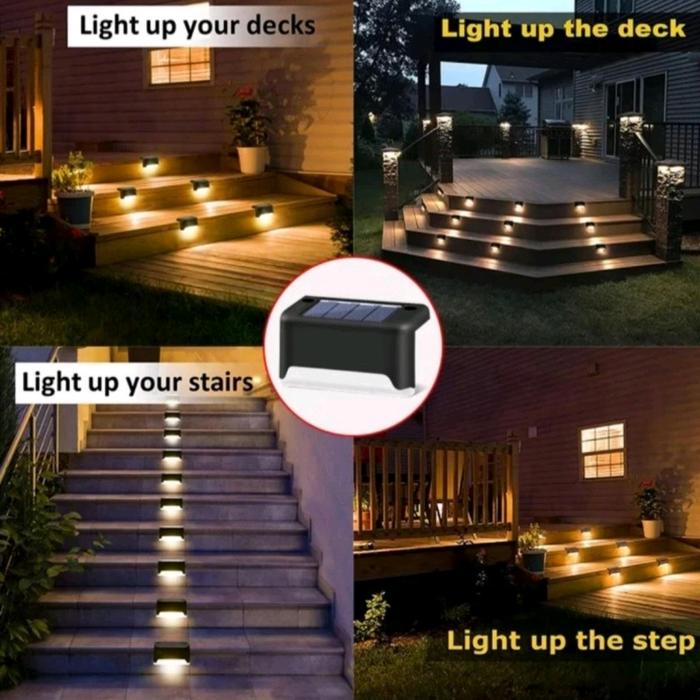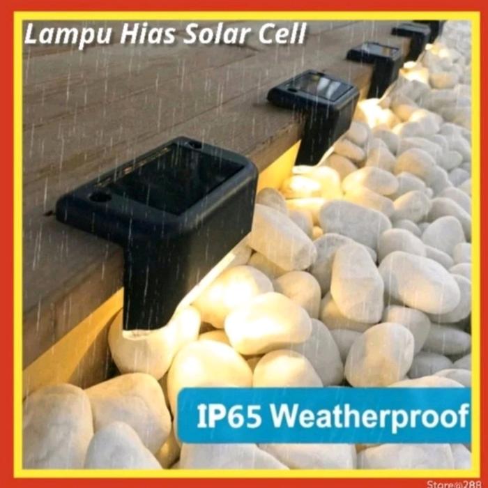 Lampu Taman Hias Solarsell Tenaga Surya Matahari Tangga Sudut Pagar Halaman Minimalis Sensor Cahaya Set - HITAM WARM
