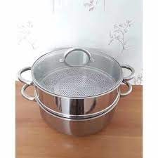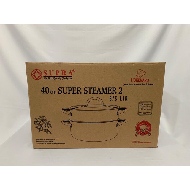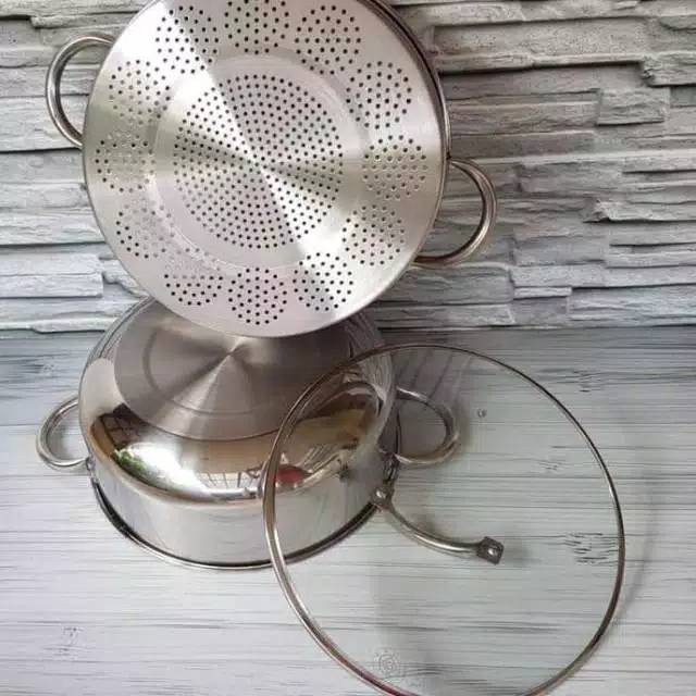 Super Steamer 40 cm 2 Susun Supra Stainless Panci Kukusan Tutup Kaca