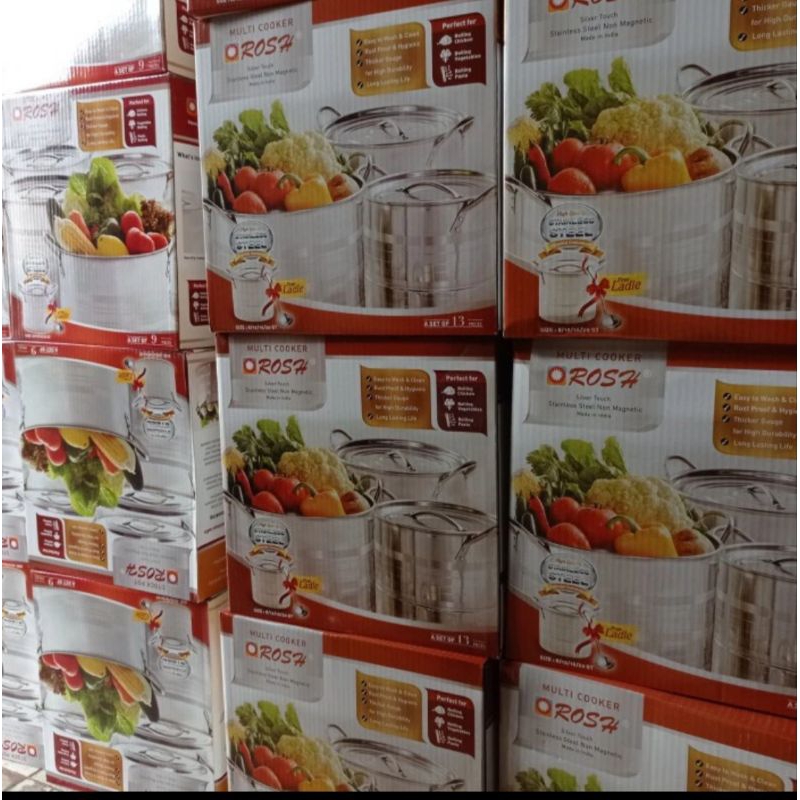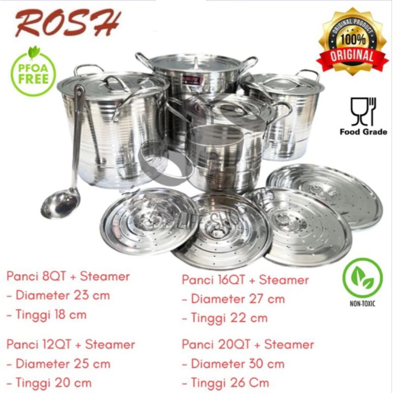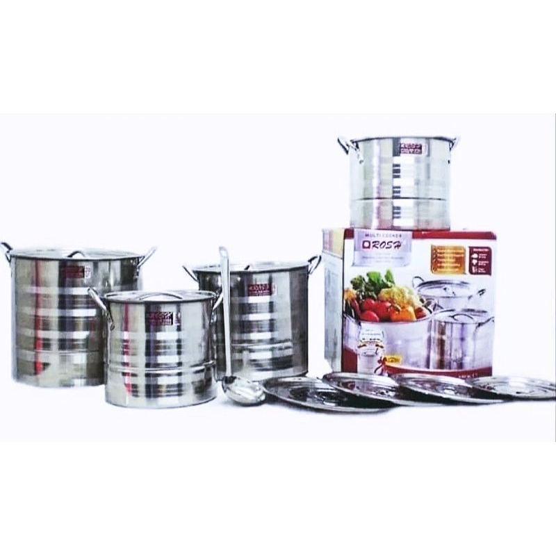 Panci Multi Cooker ROSH Stockpot Steamer 4 Set Jumbo (Kukusan) High Quality Stainless Steel