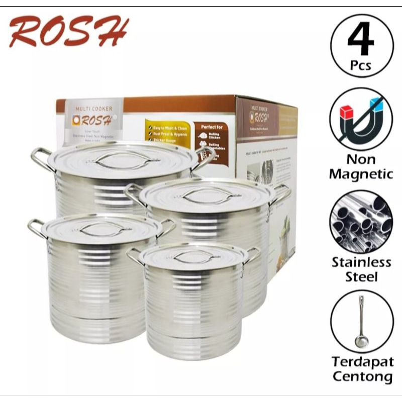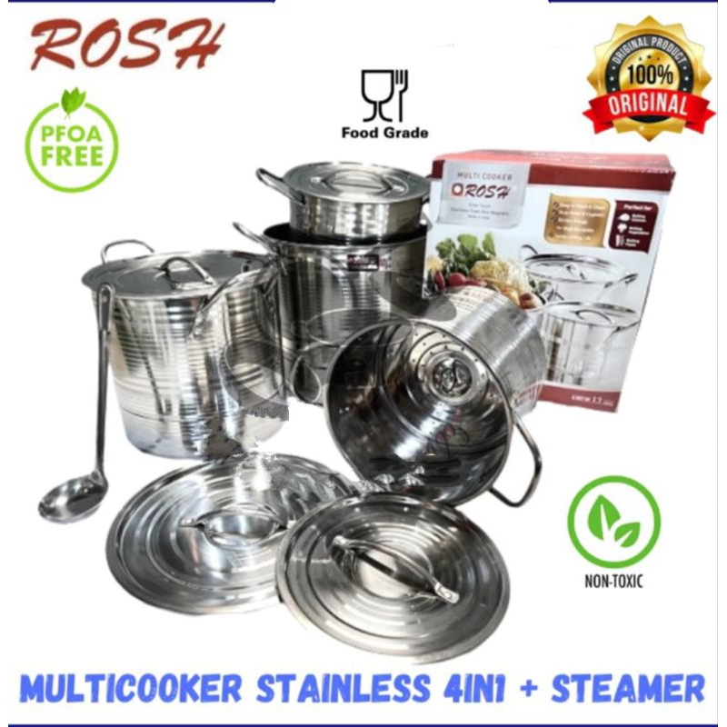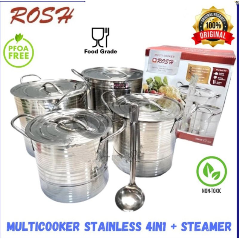 Panci Multi Cooker ROSH Stockpot Steamer 4 Set Jumbo (Kukusan) High Quality Stainless Steel