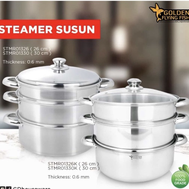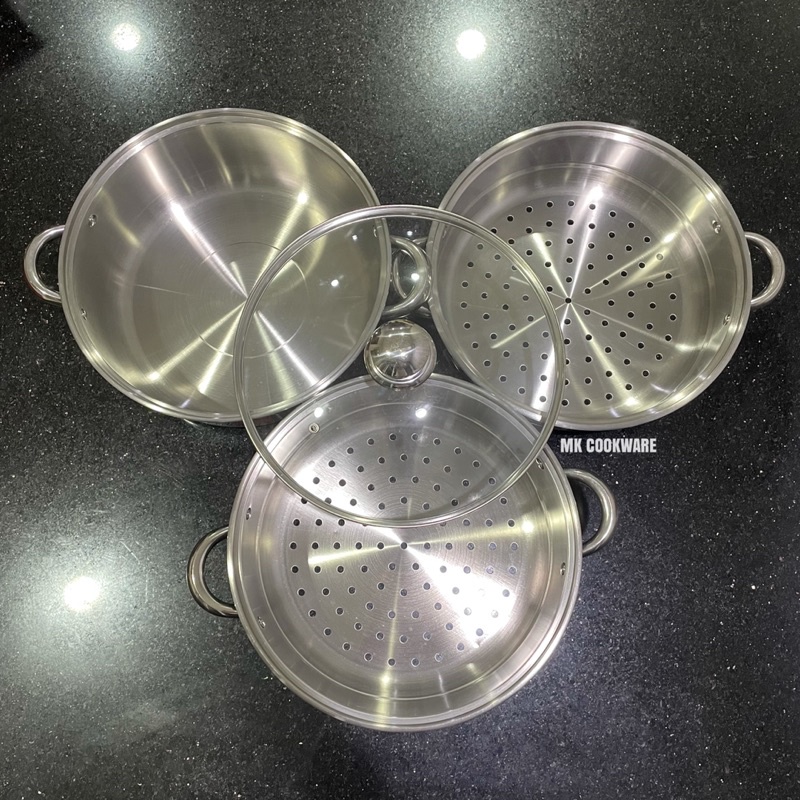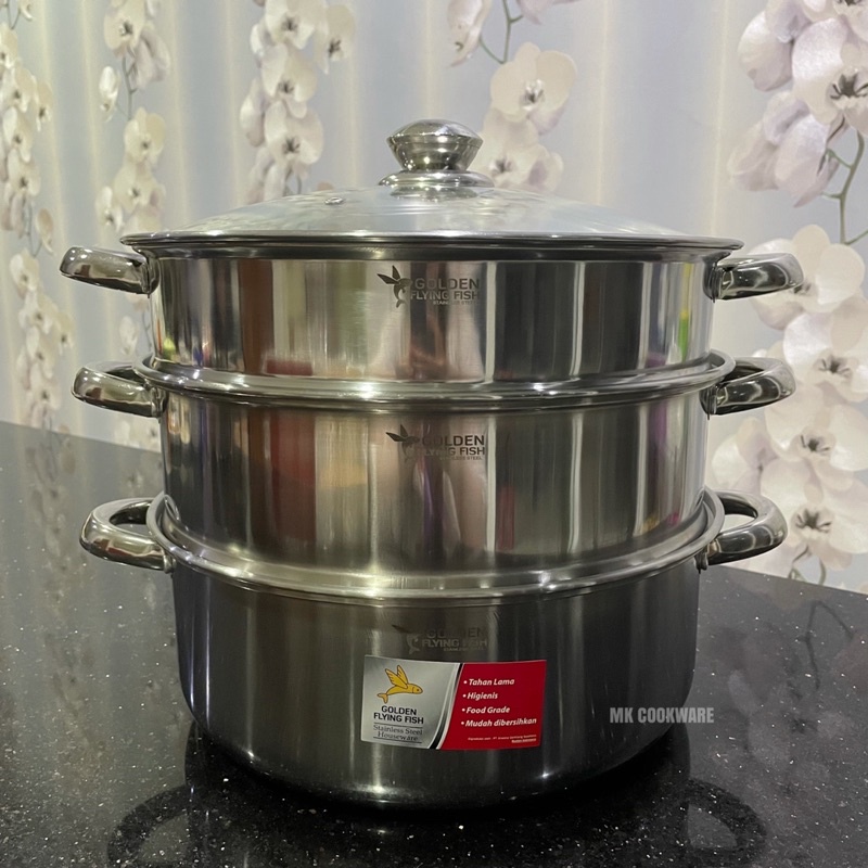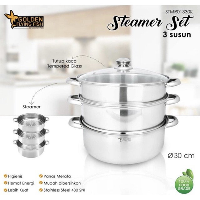 Golden Flying Fish - Steamer Set 3 Susun 30cm - Stainless Steel - Panci Kukusan Tingkat - STMR01330 STMR01330G - SNI & A
