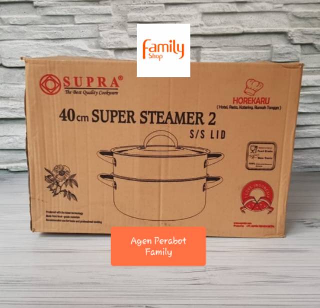 Super Steamer 40 cm 2 Susun SUPRA Stainless Steel / Panci Kukus 2 Susun