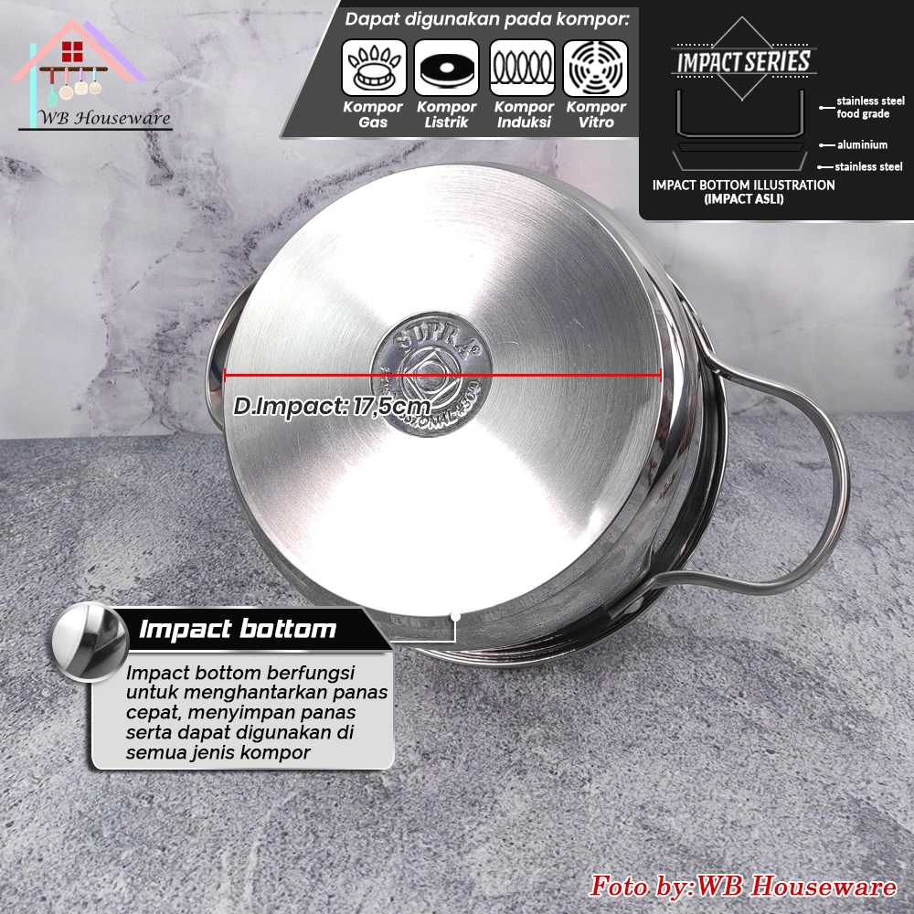 SUPRA Dutch Oven 20cm Stainless Steel SUS 304 + steamer + Tutup Kaca Professional series impact bottom / panci masak mie